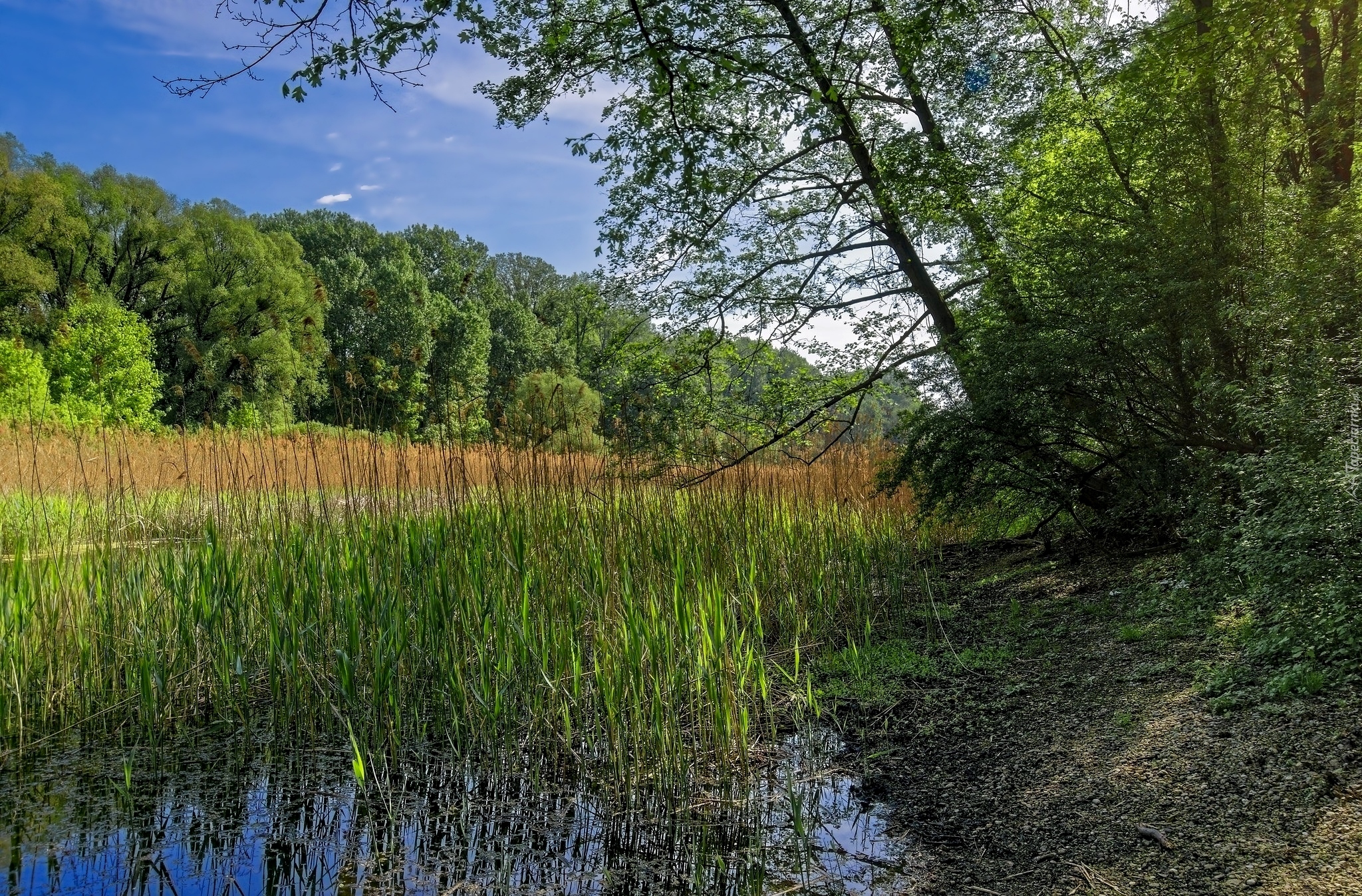 Edytor tapety: Leśne bagna porośnięte trzciną