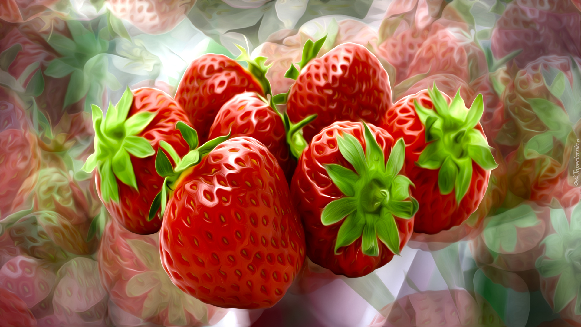 Edytor tapety: Truskawki na kolorowym tle w grafice