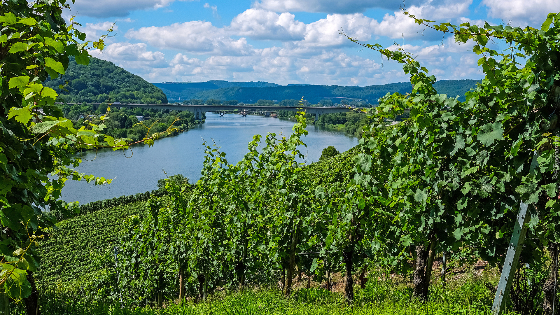 Edytor tapety: Winnice nad rzeką Mozelą w Niemczech