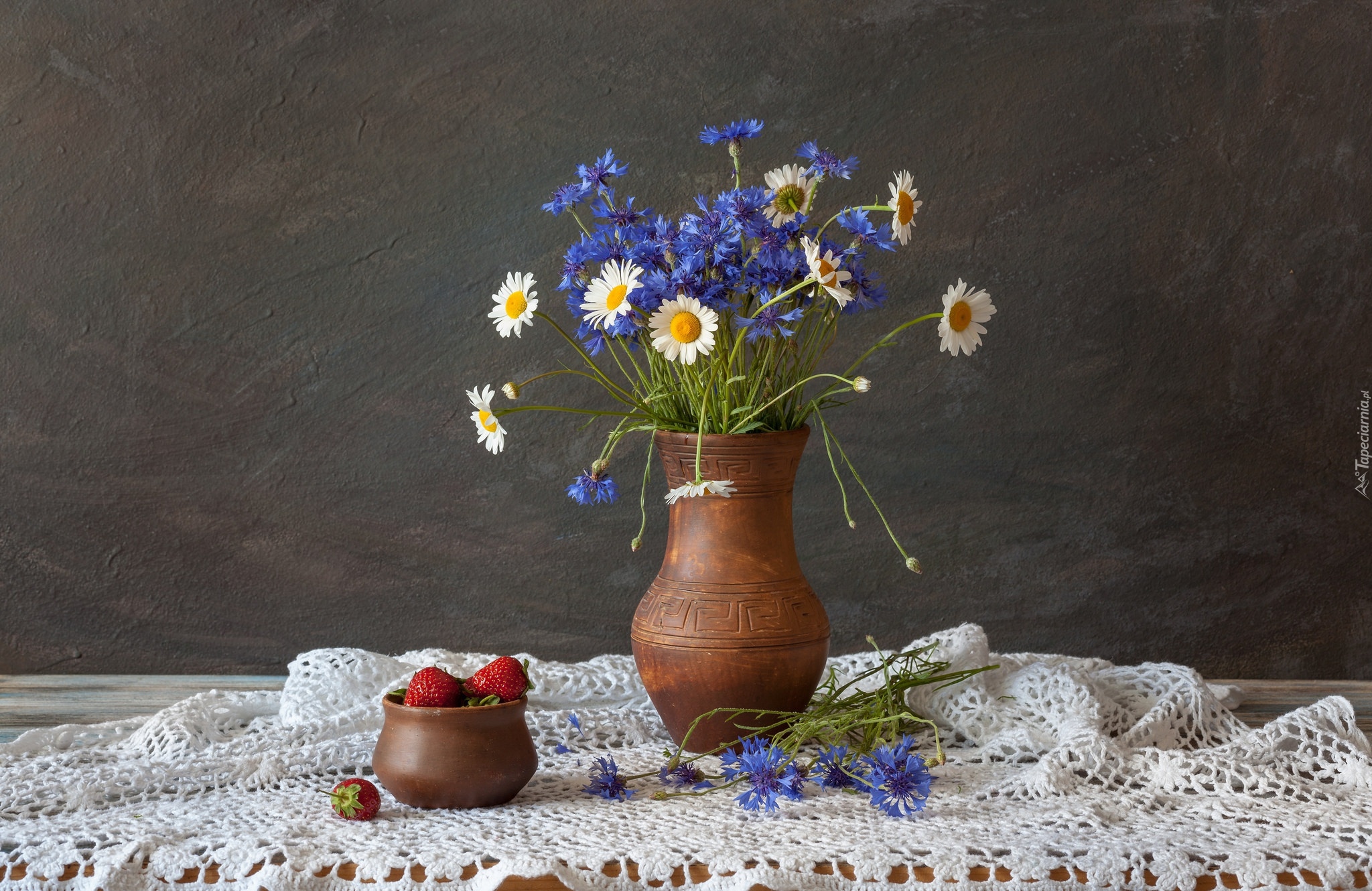 Edytor tapety: Rumianki i chabry w wazonie