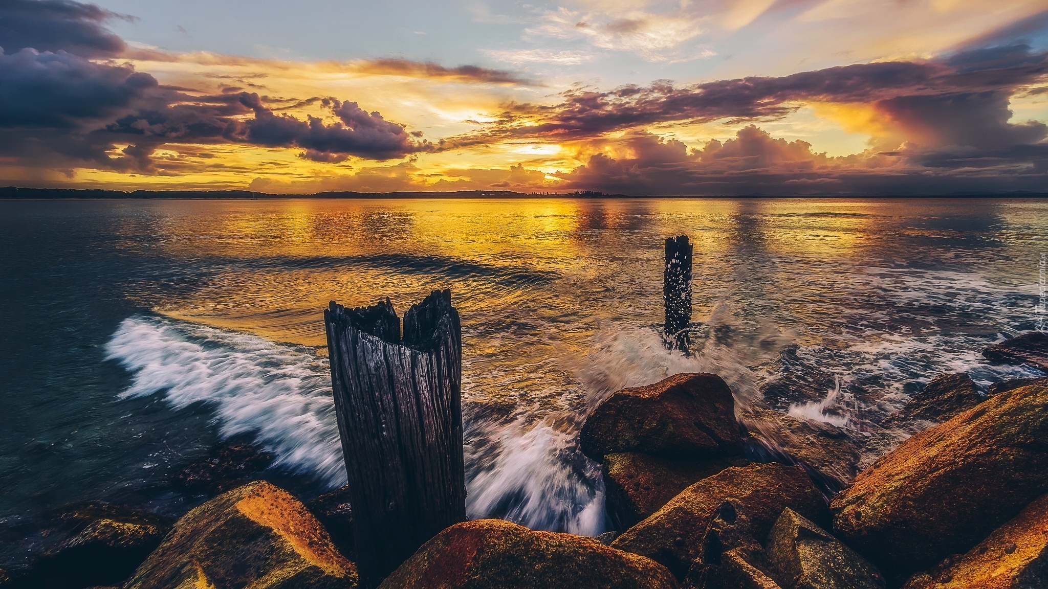 Edytor tapety: Pale i kamienie na brzegu jeziora