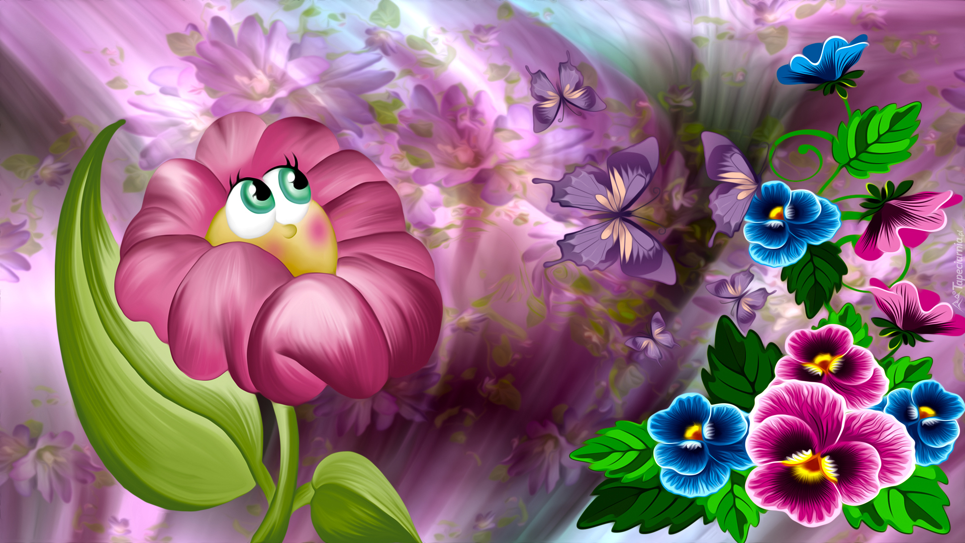 Edytor tapety: Kwiaty i motylki w grafice