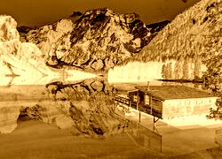 Edytor tapety: Domek nad jeziorem Pragser Wildsee we włoskich Dolomitach