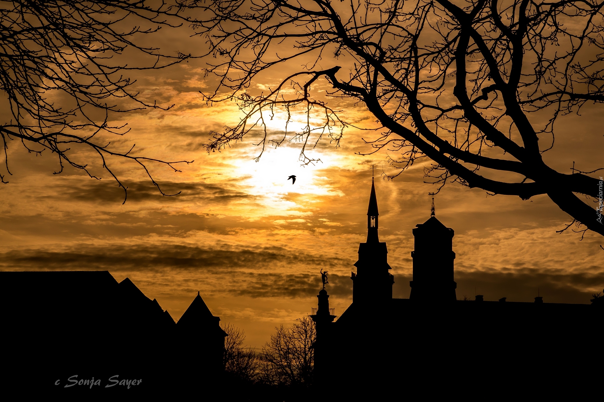 Edytor tapety: Zachód słońca nad kolegiatą Stiftskirche