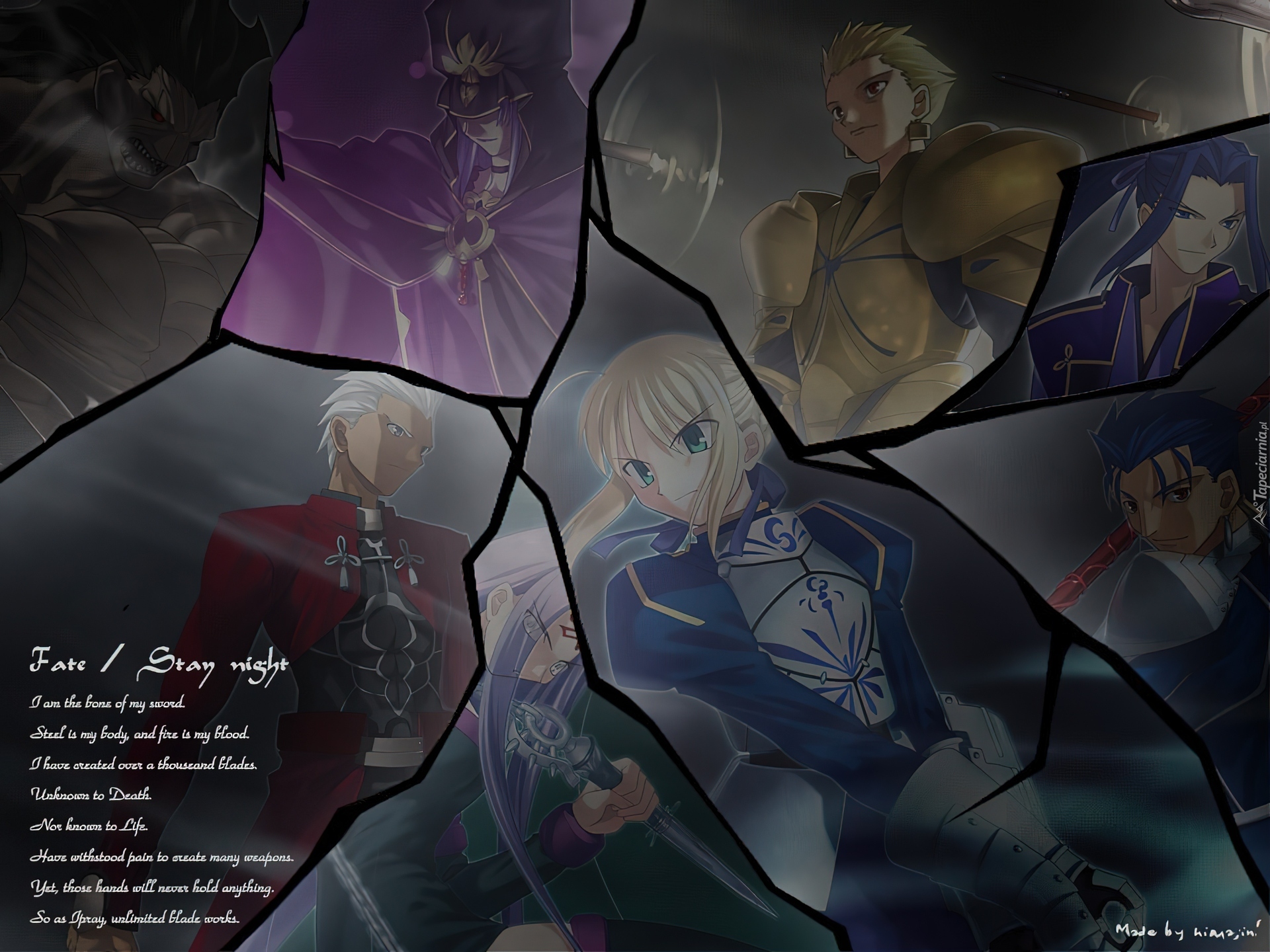 Edytor tapety: Fate Stay Night, zbite szkło, ludzie, postacie, napisy