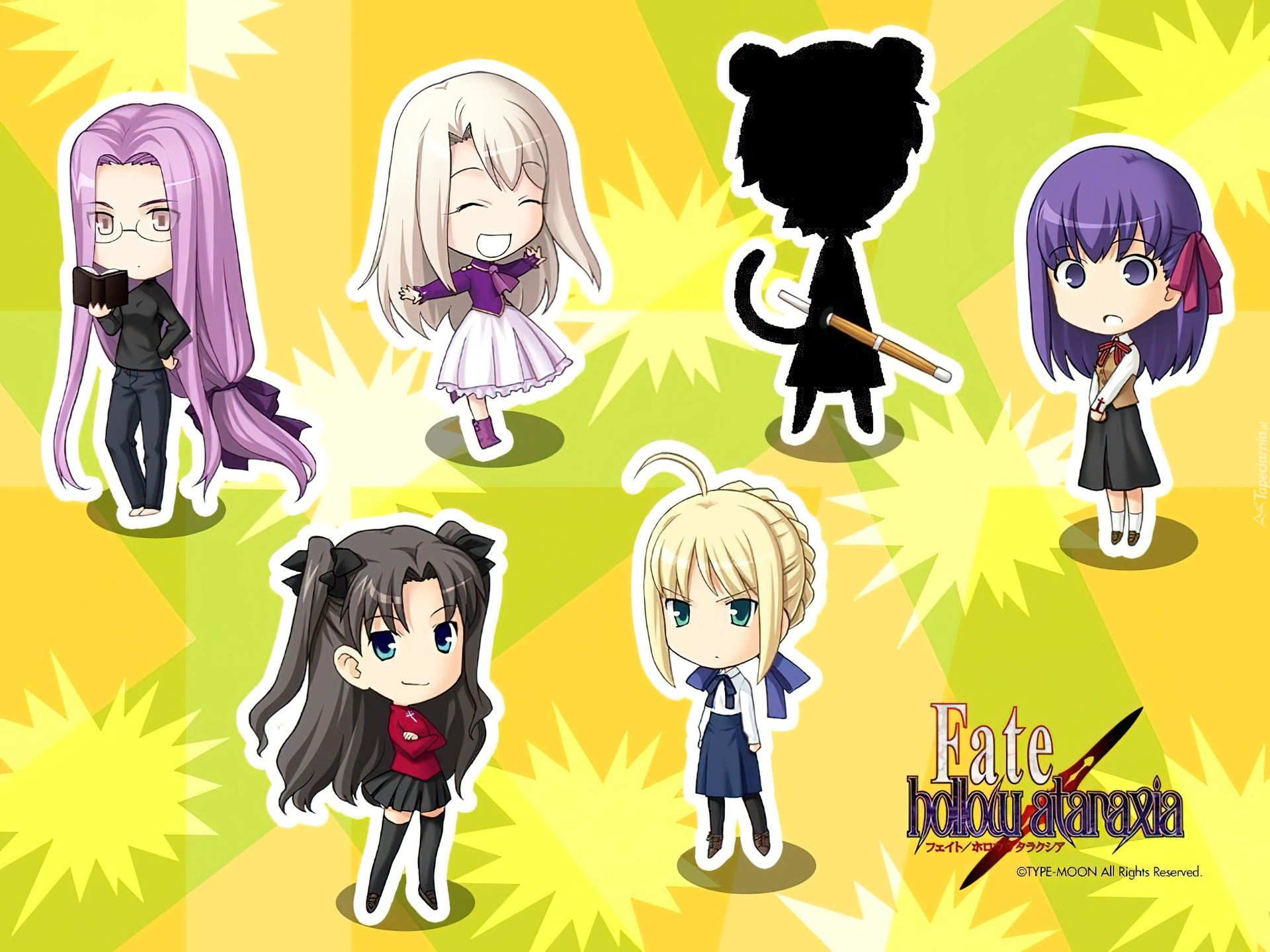 Edytor tapety: Fate Stay Night, dziewczynki, napis, logo, postać, cień