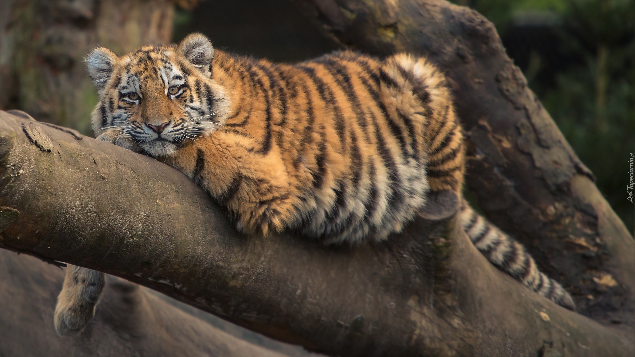 Edytor tapety: Odpoczywający tygrys na konarze