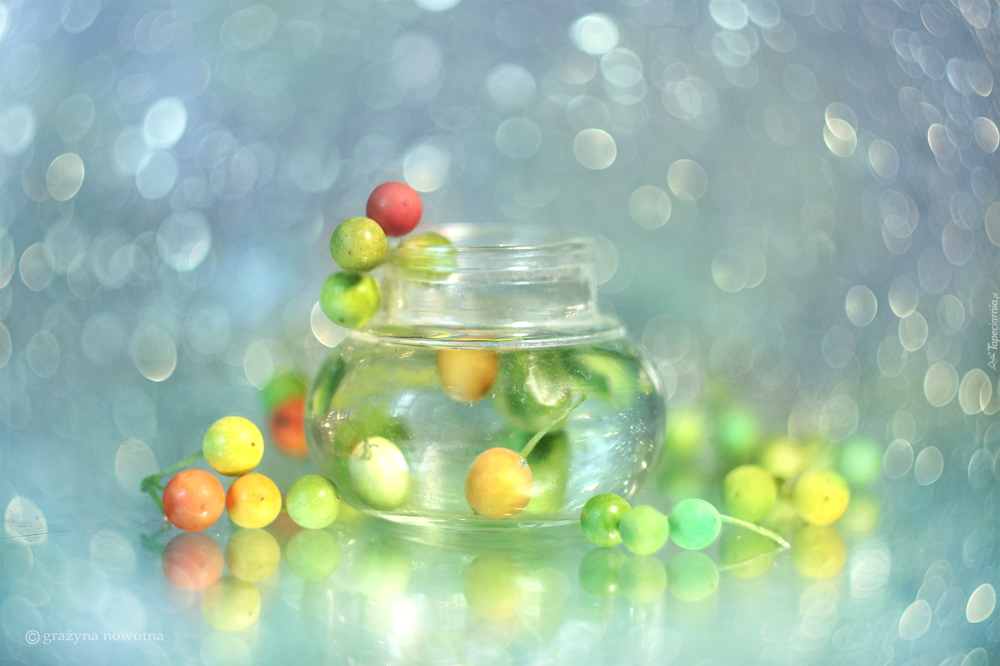 Edytor tapety: Jagody w wazoniku i obok