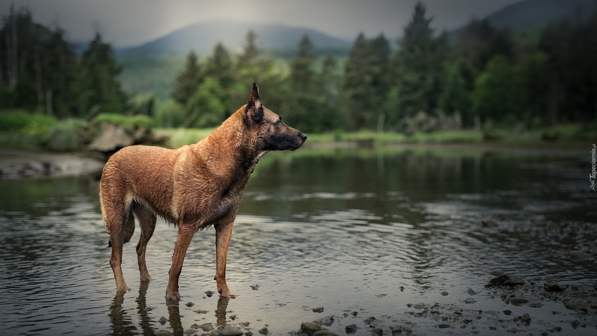 Edytor tapety: Owczarek belgijski Malinois w rzece