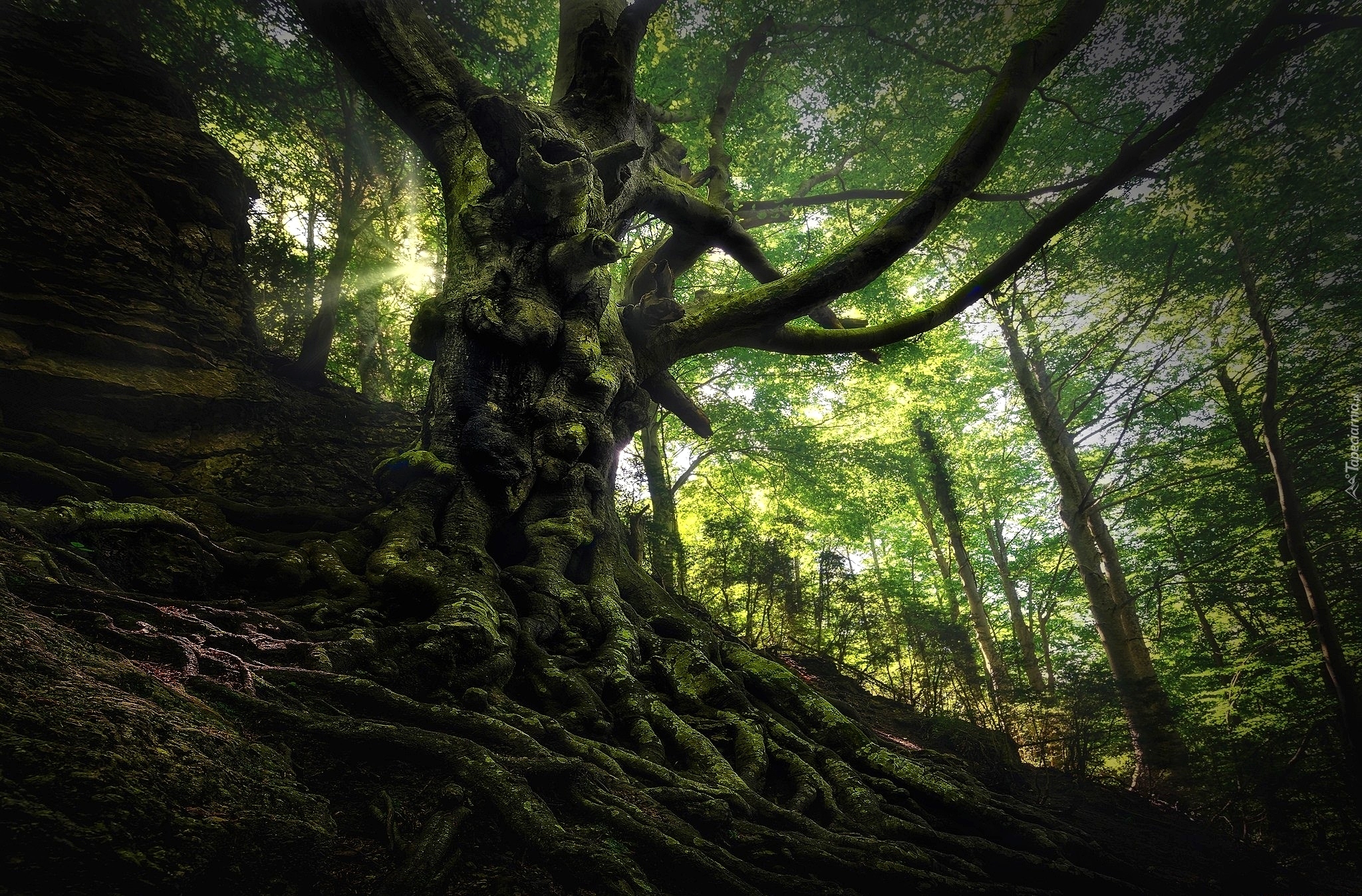 Edytor tapety: Drzewo o omszałych korzeniach