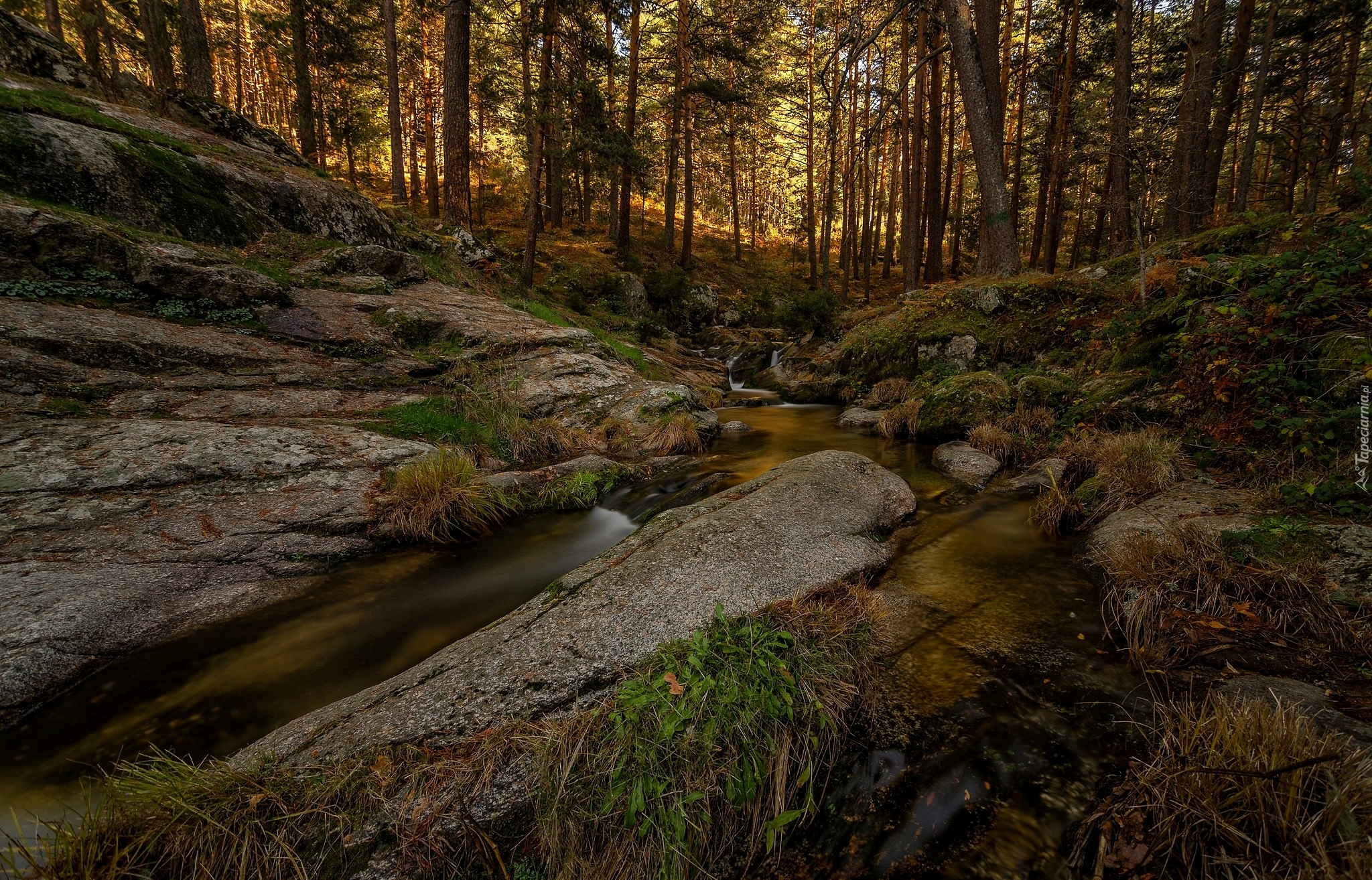Edytor tapety: Leśna rzeka między skałami