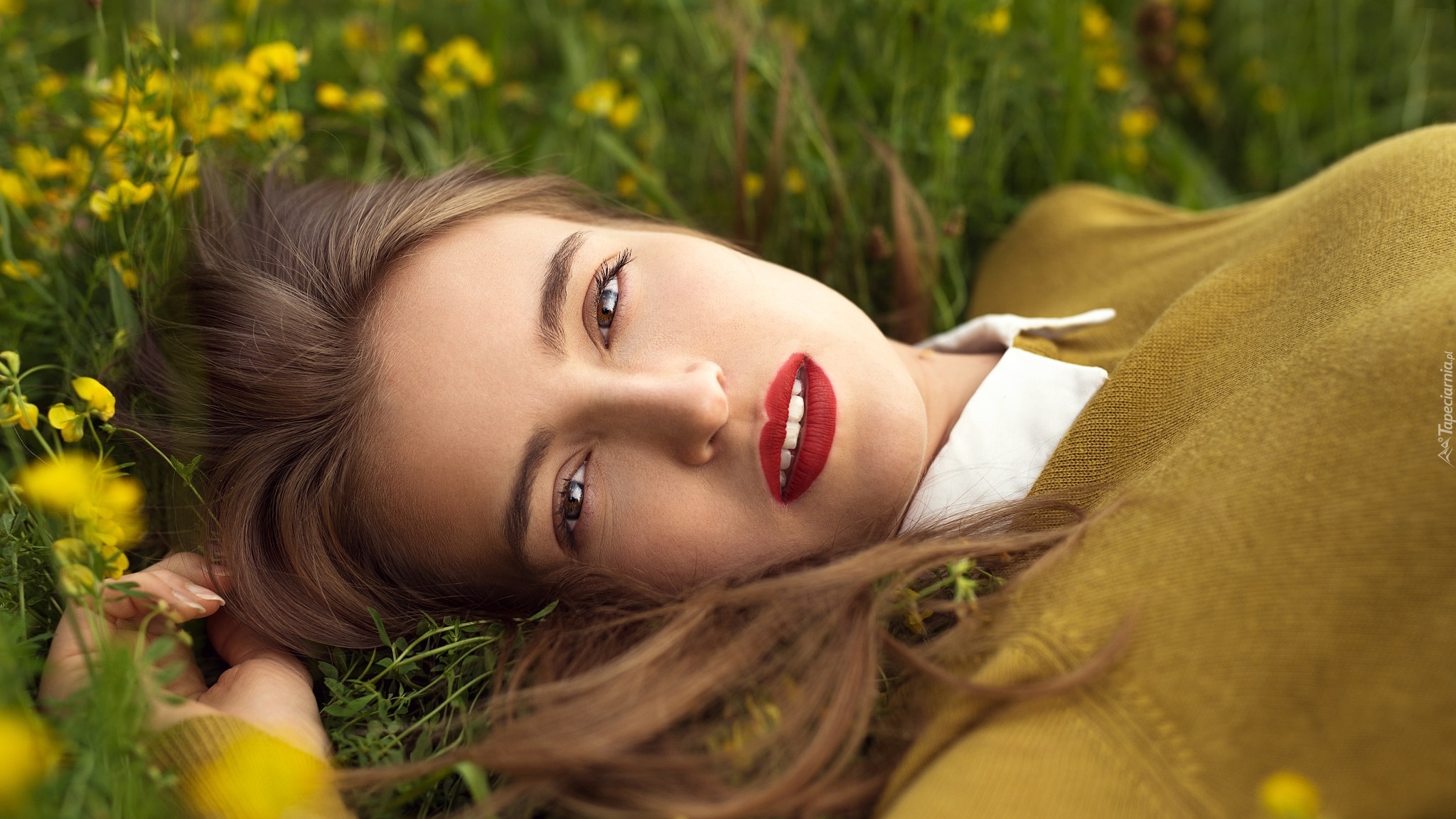 Edytor tapety: Rozmarzona kobieta na łące