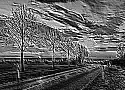 Edytor tapety: Drzewa przy drodze o zachodzie słońca
