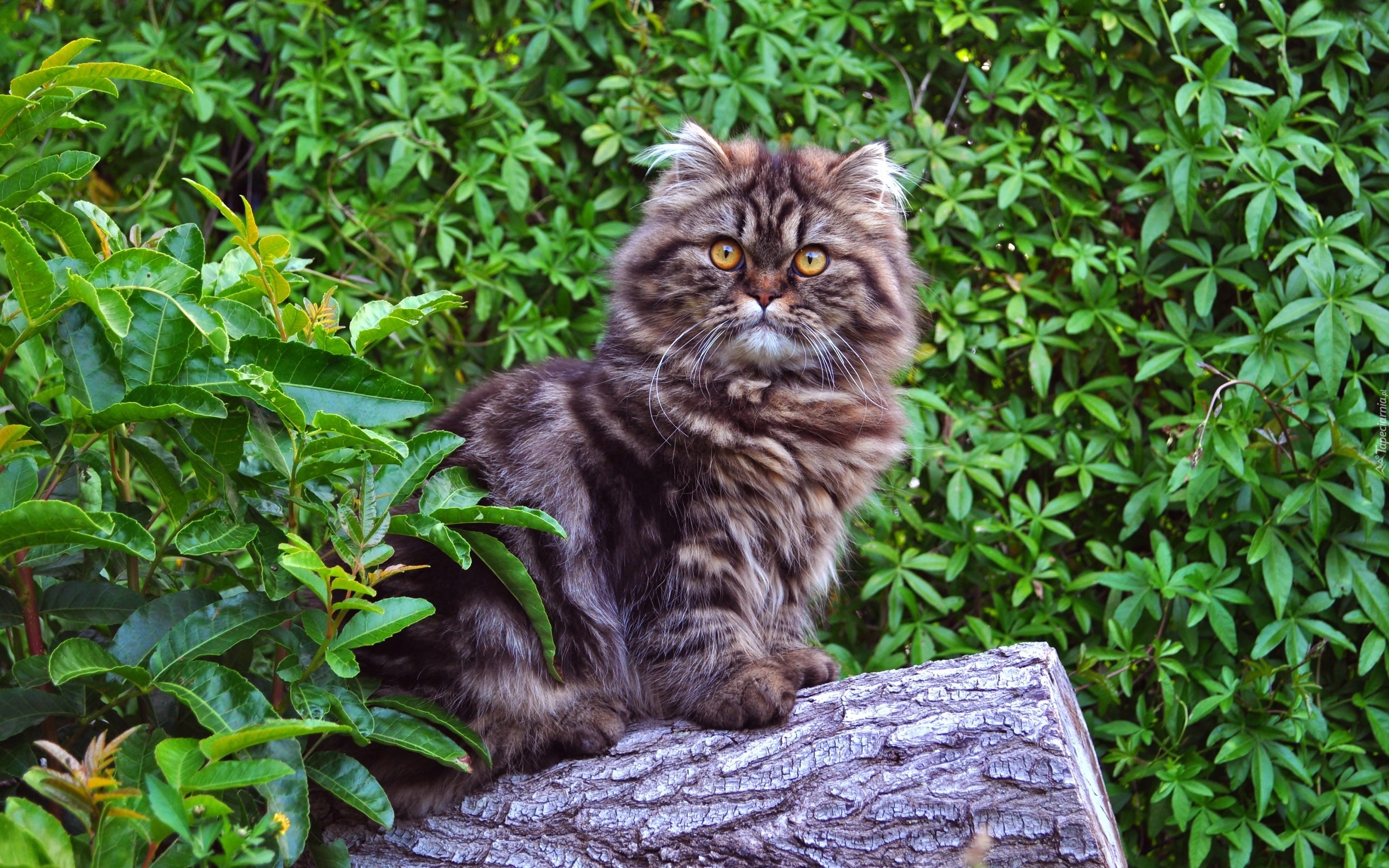 Edytor tapety: Kot norweski leśny na pniu