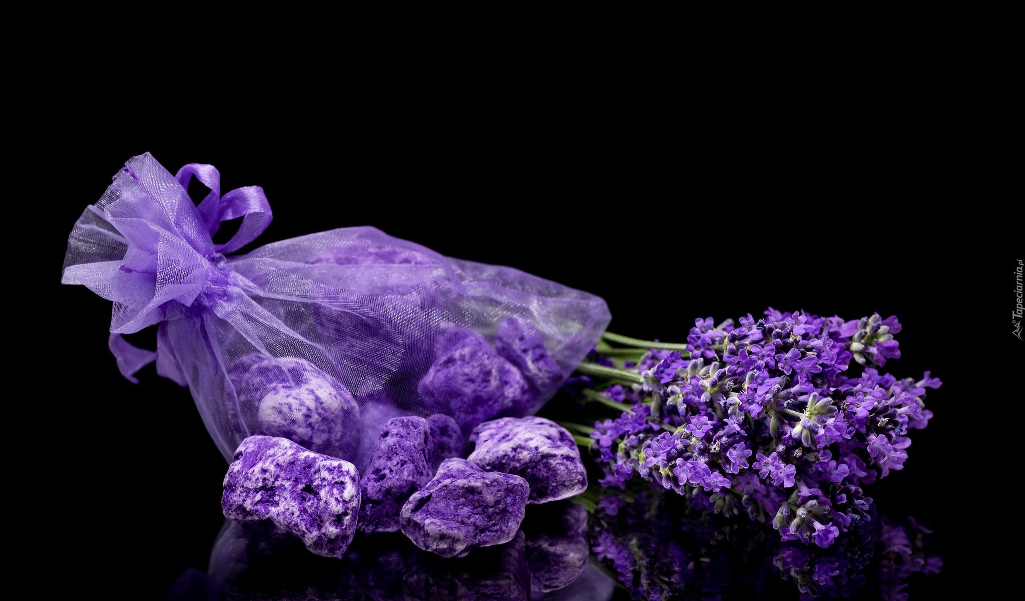 Edytor tapety: Kwiaty lawendy obok woreczka z grudami soli
