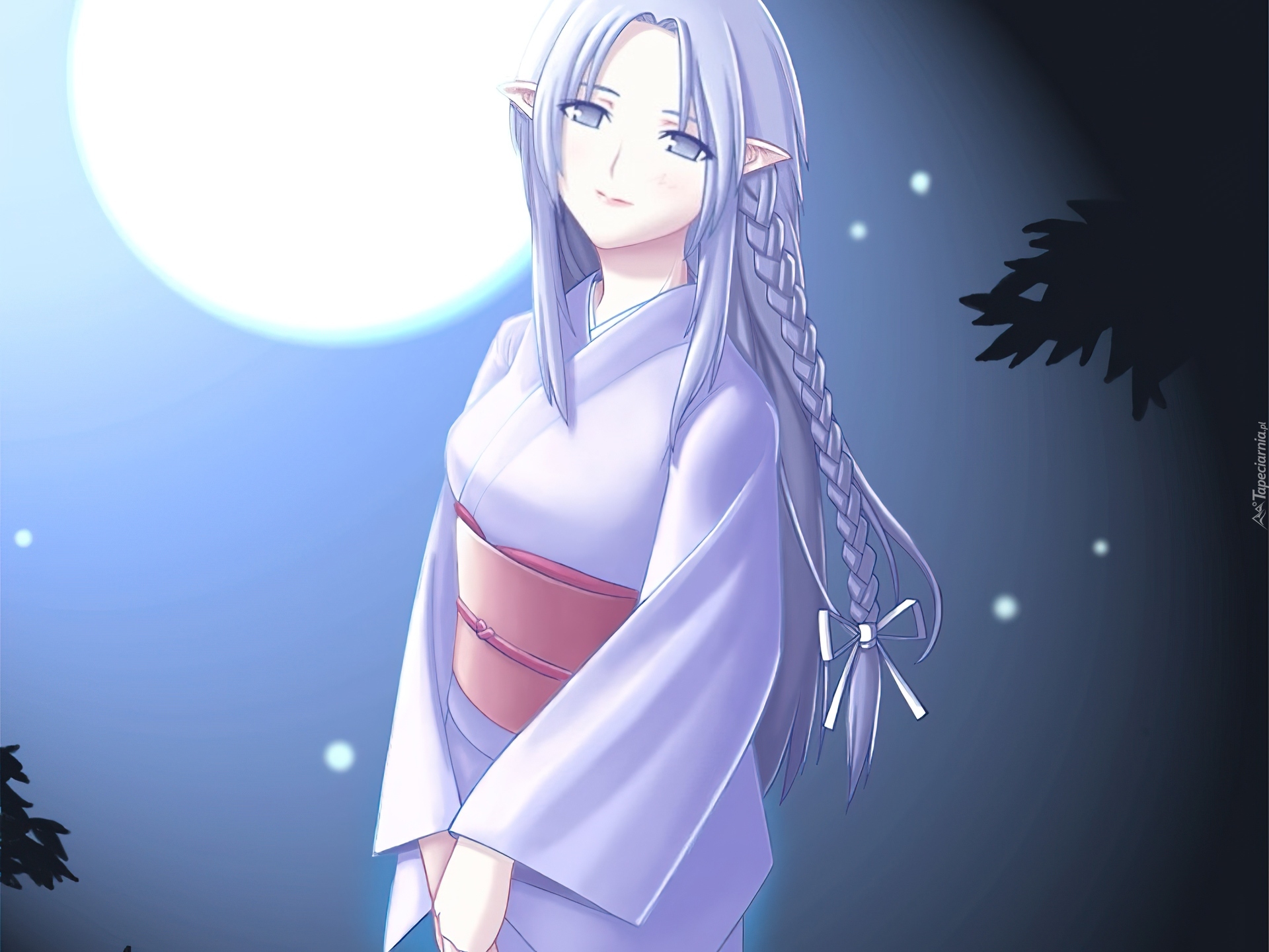 Edytor tapety: księżyc, Fate Stay Night, kimono, warkocz, kobieta