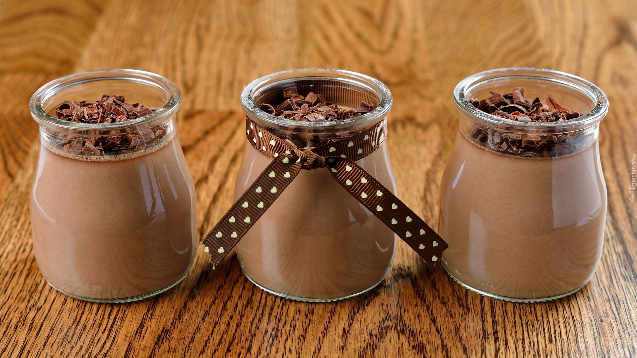 Edytor tapety: Trzy pojemniki z czekoladowym deserem
