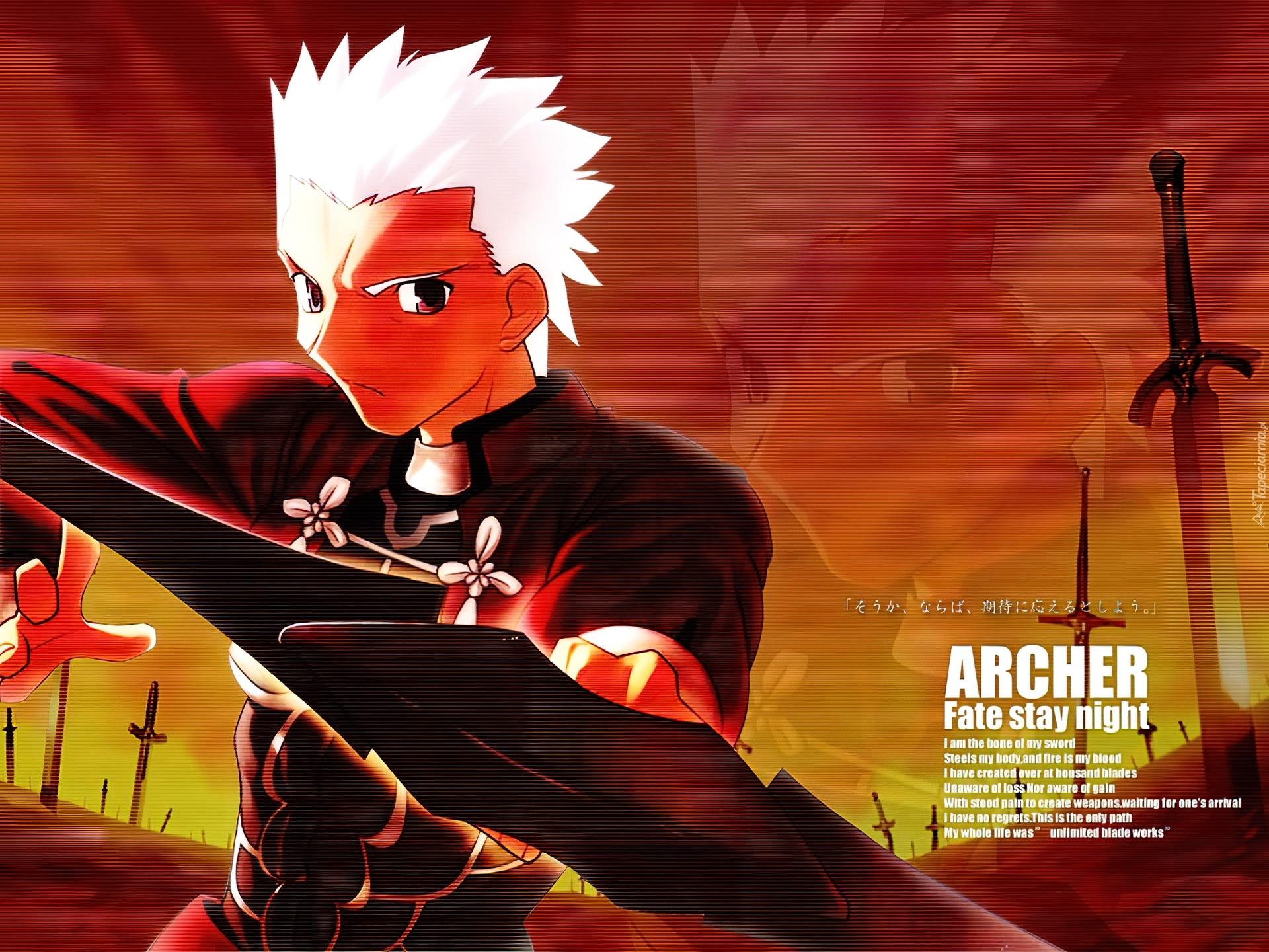Edytor tapety: napisy, Fate Stay Night, fecet, miecze, twarz