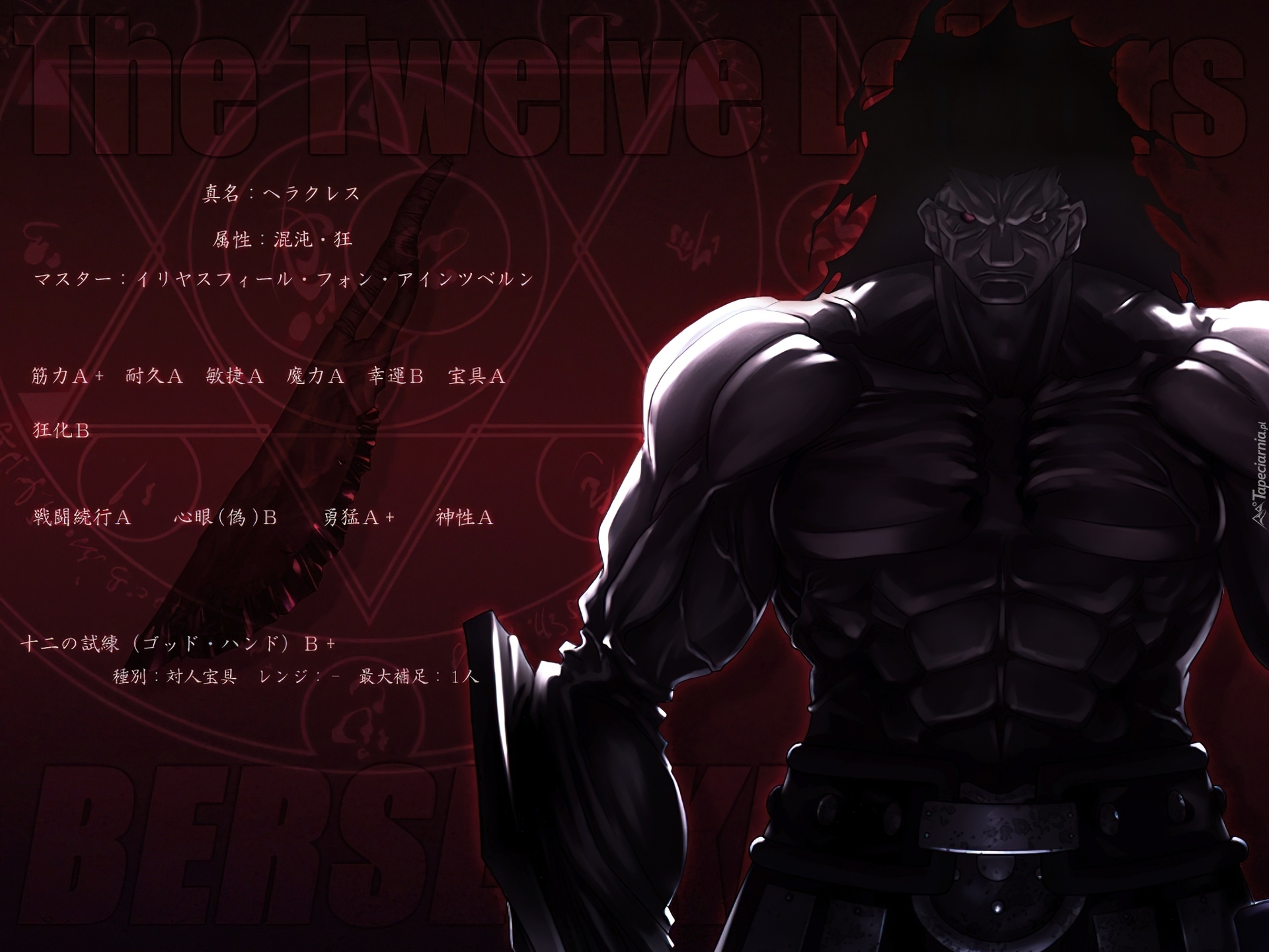 Edytor tapety: Fate Stay Night, muskularny, postać, broń, napisy