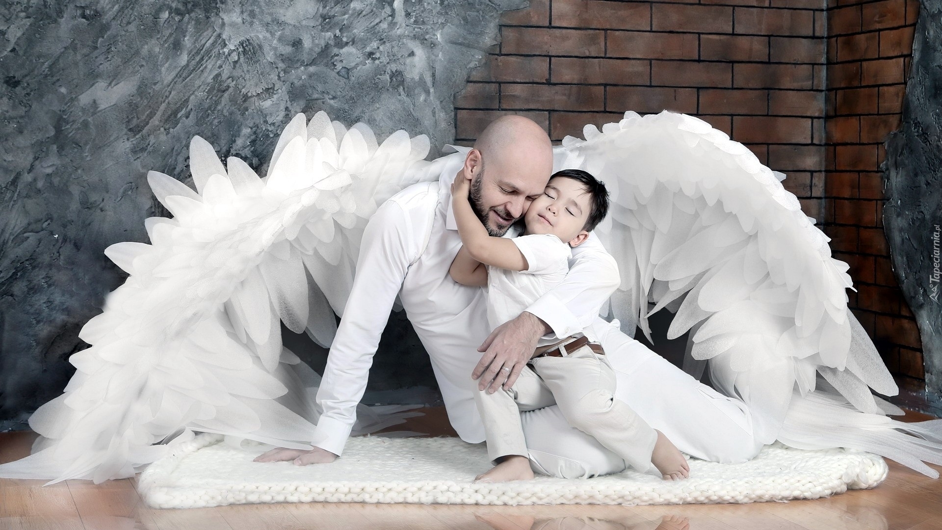 Edytor tapety: Ojciec z synem na tle skrzydeł