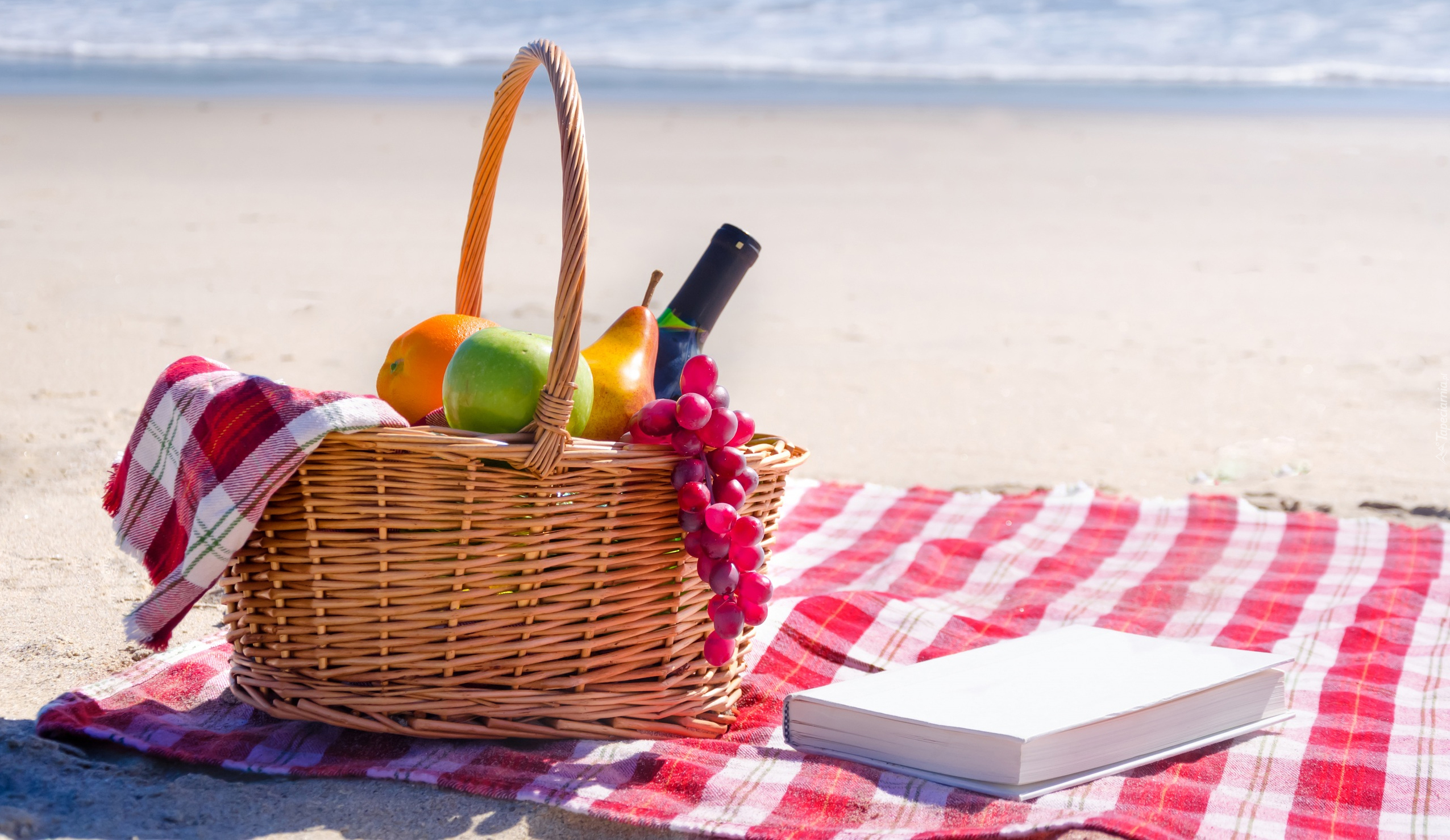 Edytor tapety: Koszyk z owocami i winem obok książki