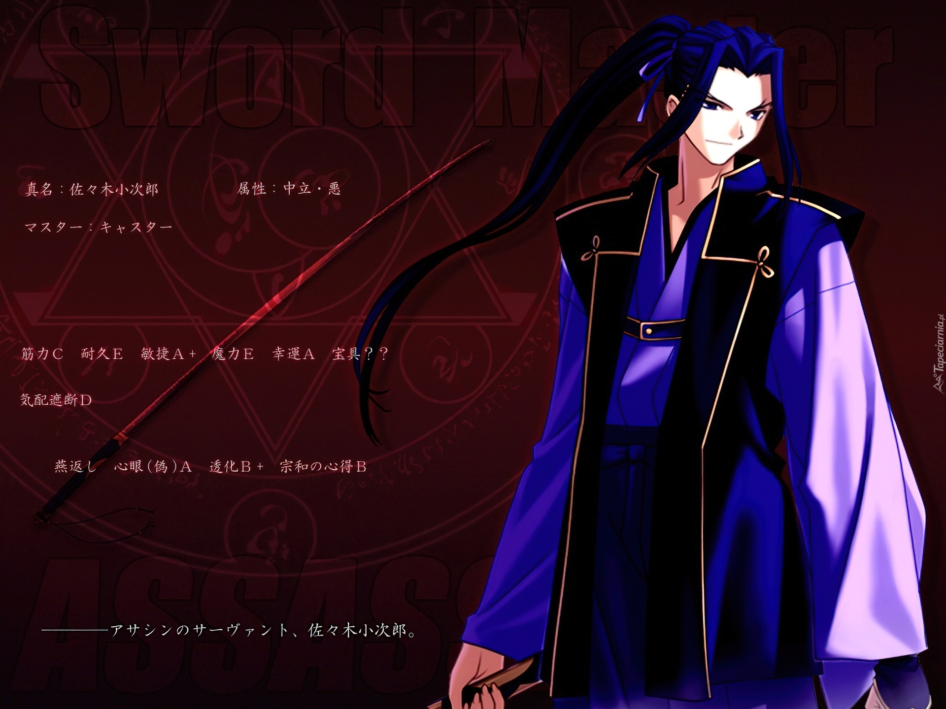 Edytor tapety: Fate Stay Night, napisy, postać, kimono, facet, katana