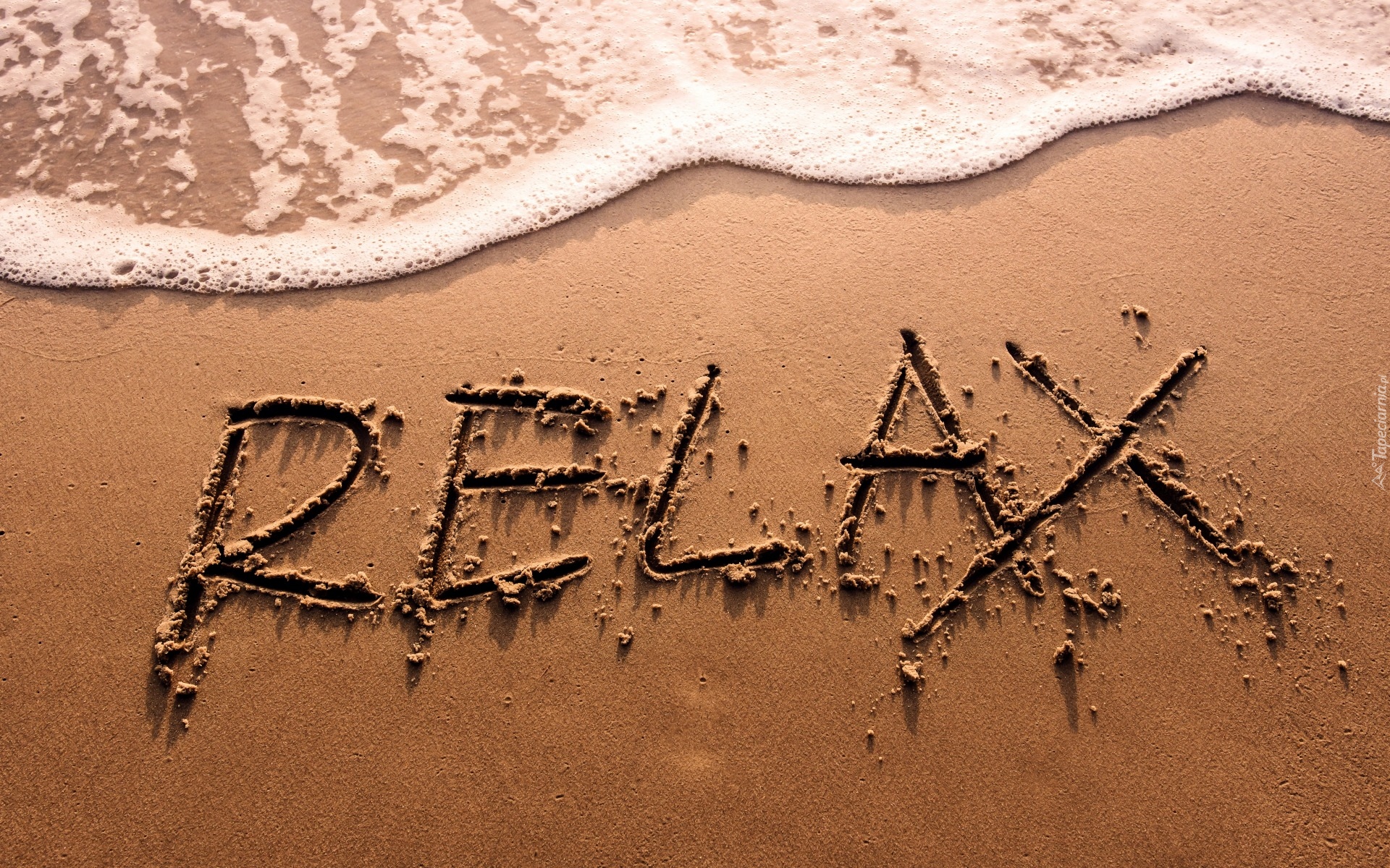 Edytor tapety: Napis relax na piasku