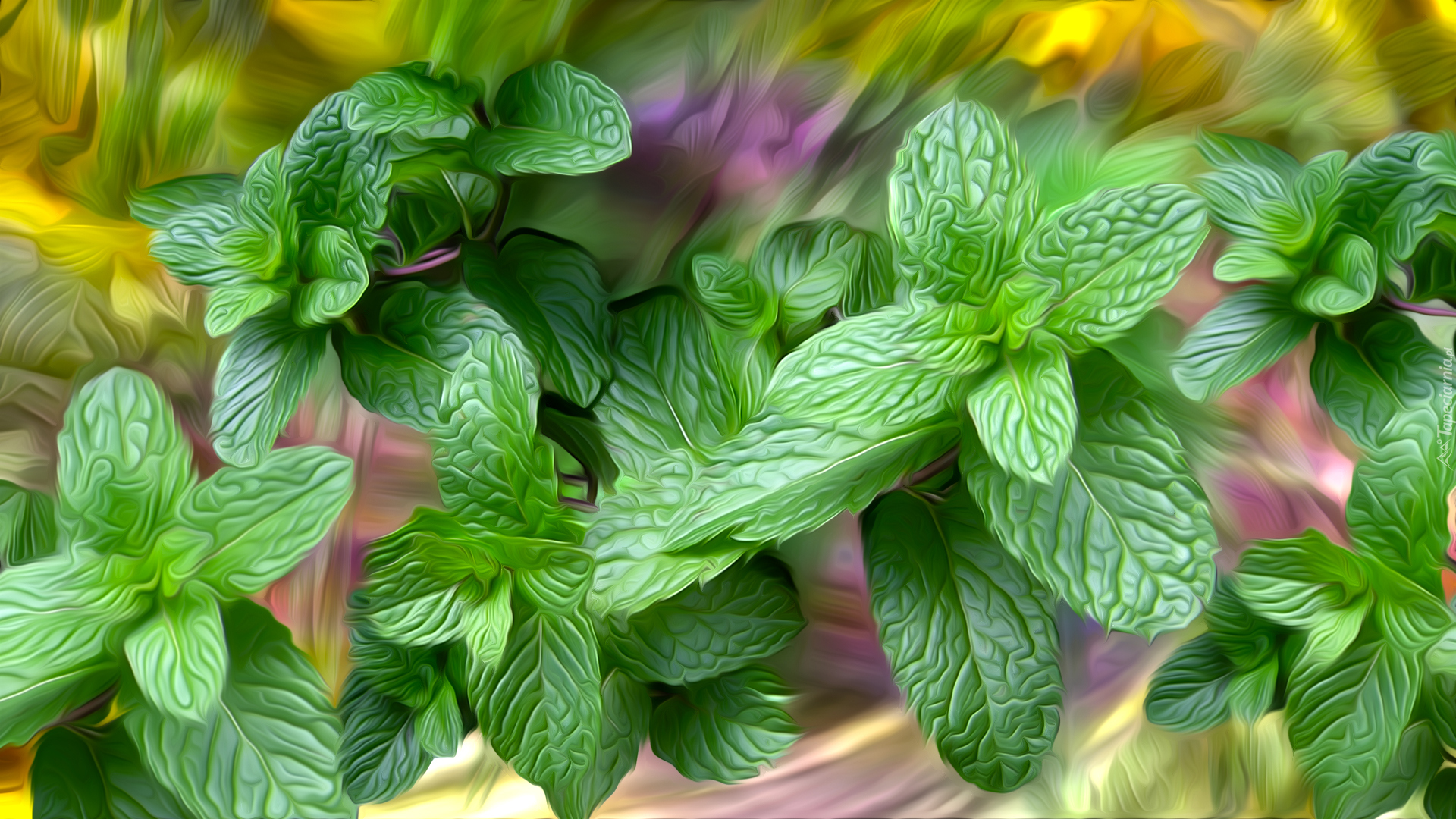 Edytor tapety: Liście mięty w grafice