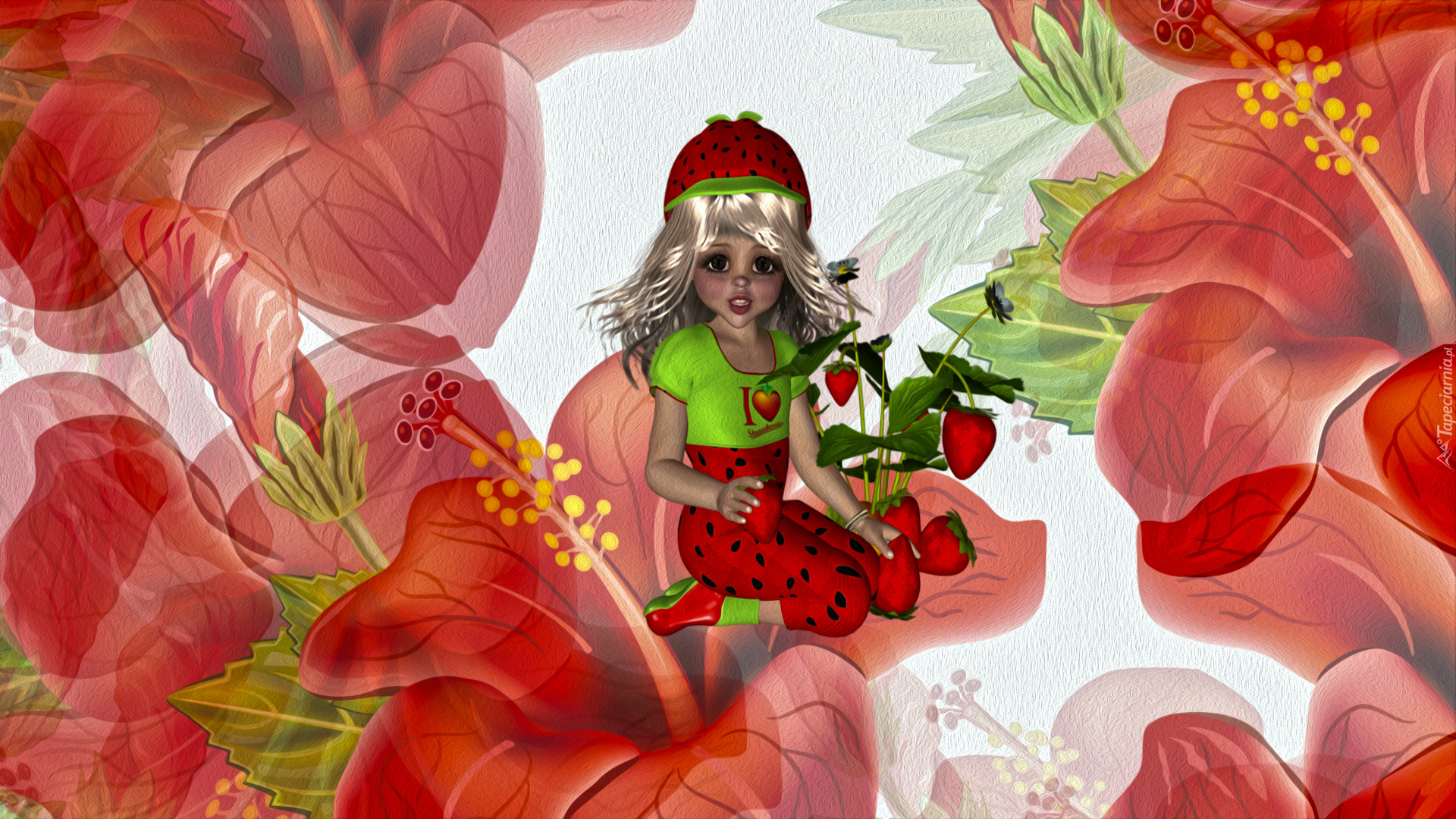 Edytor tapety: Laleczka na kwiatach hibiskusa