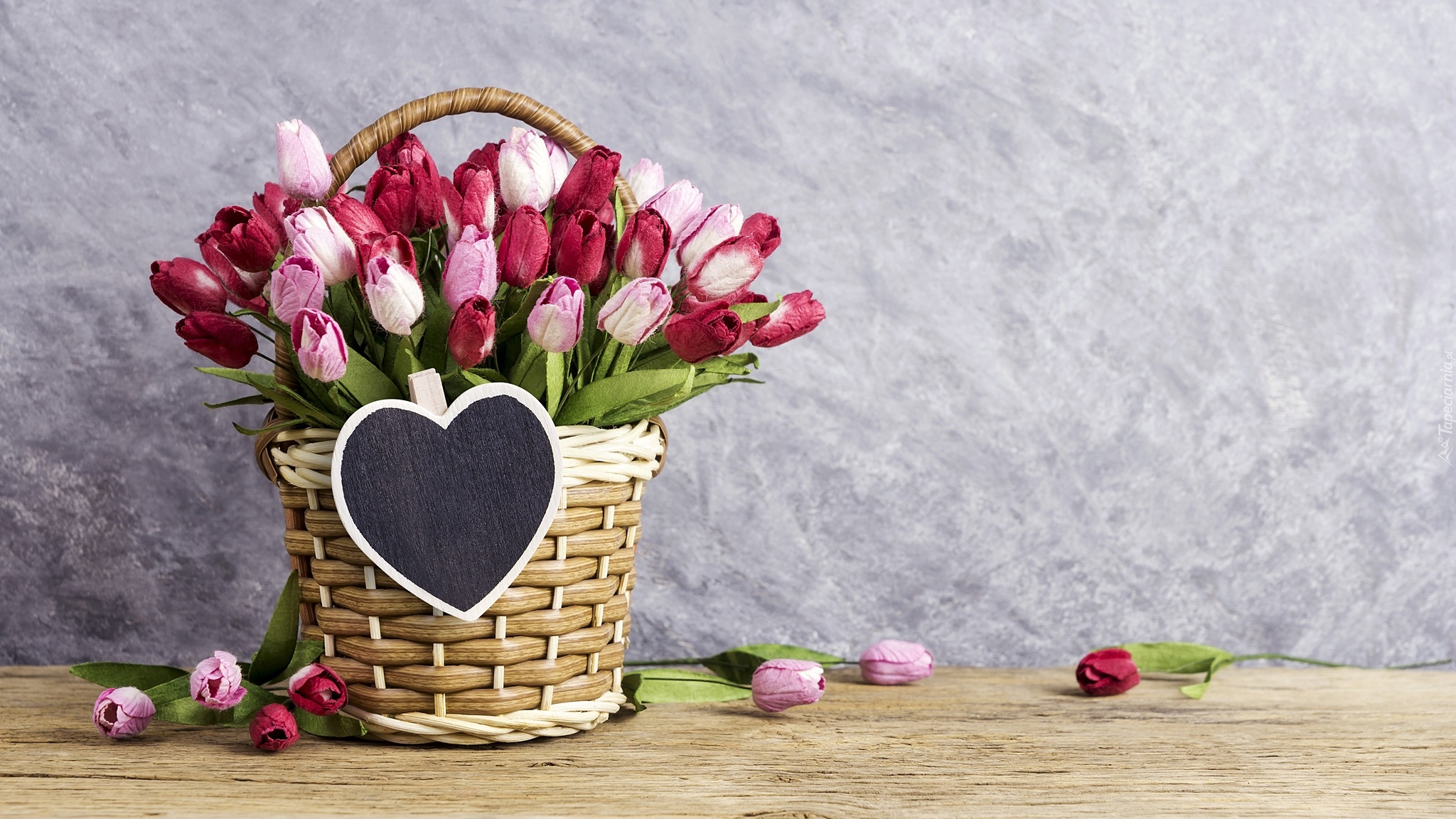 Edytor tapety: Papierowe tulipany w koszyku