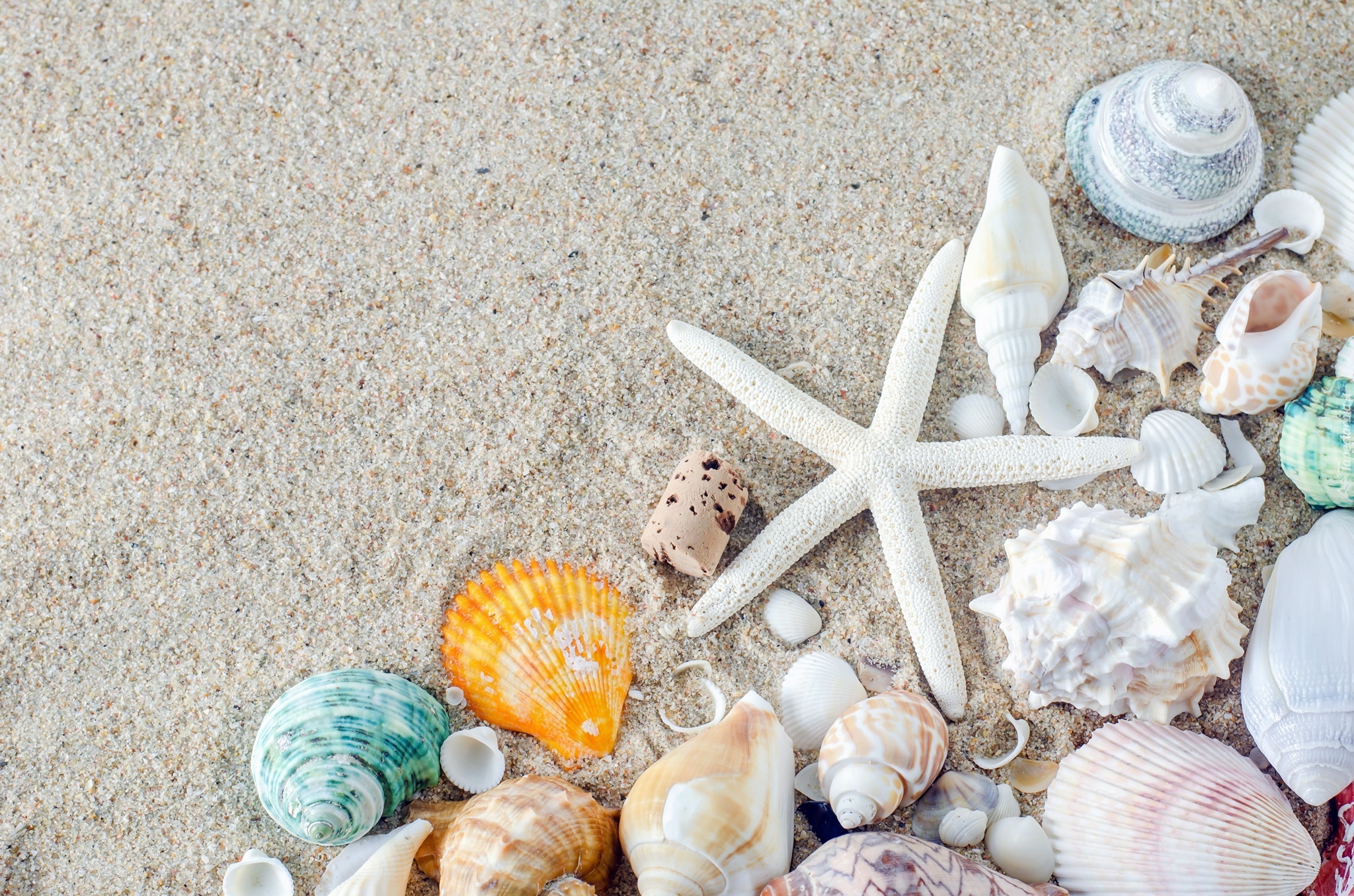 Edytor tapety: Muszelki i biała rozgwiazda na piasku