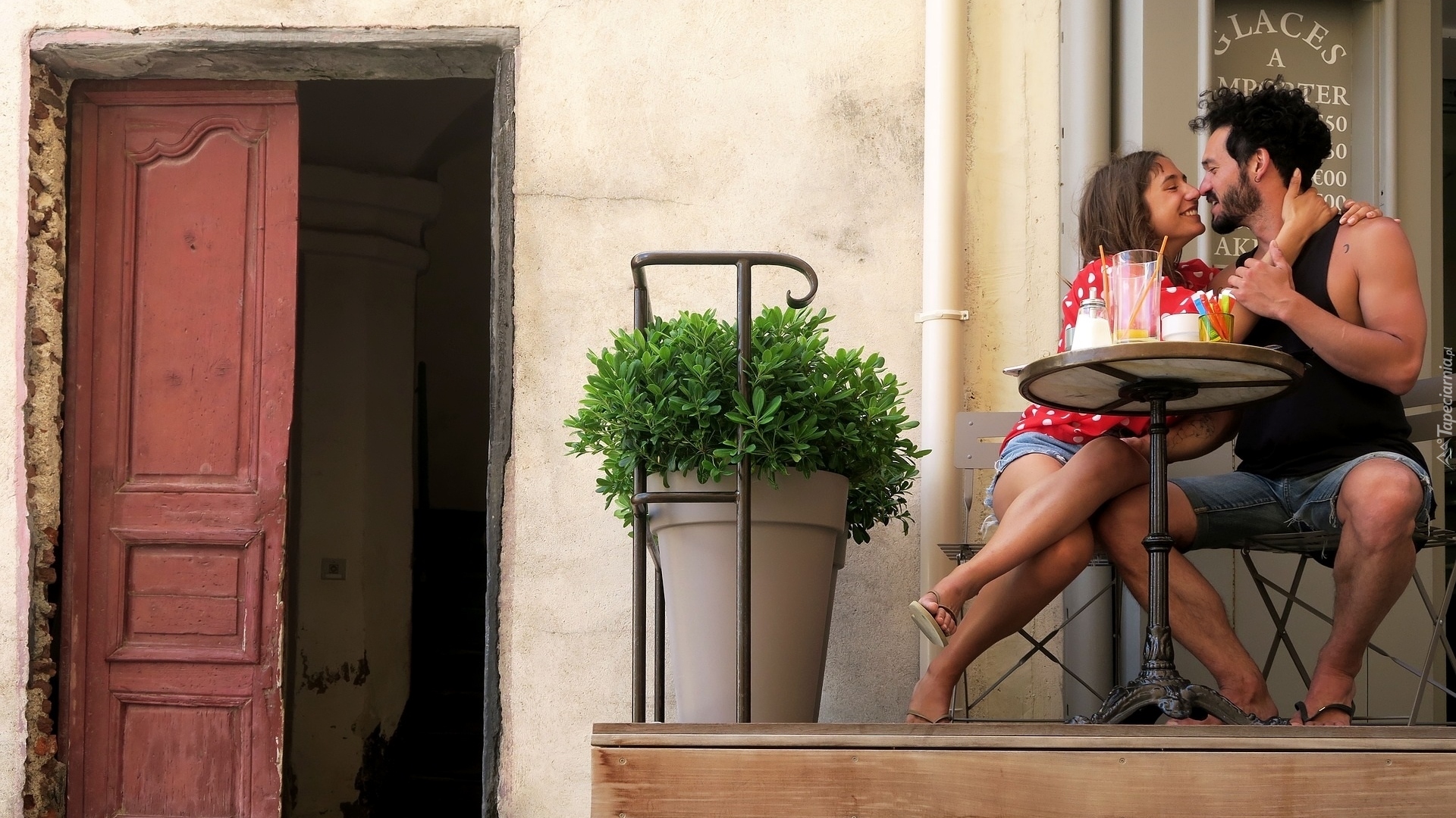 Edytor tapety: Randka przy stoliku kawiarnianym