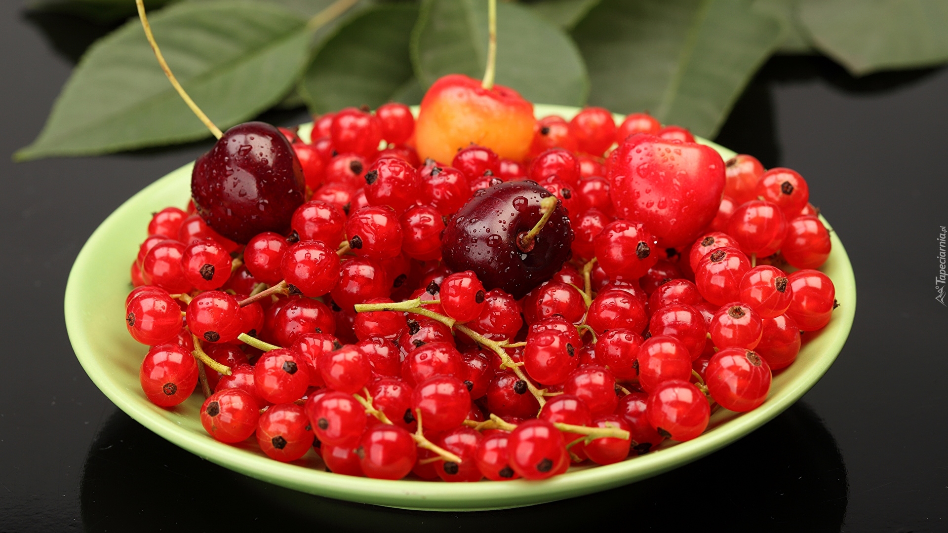 Edytor tapety: Porzeczki i czereśnie na talerzu