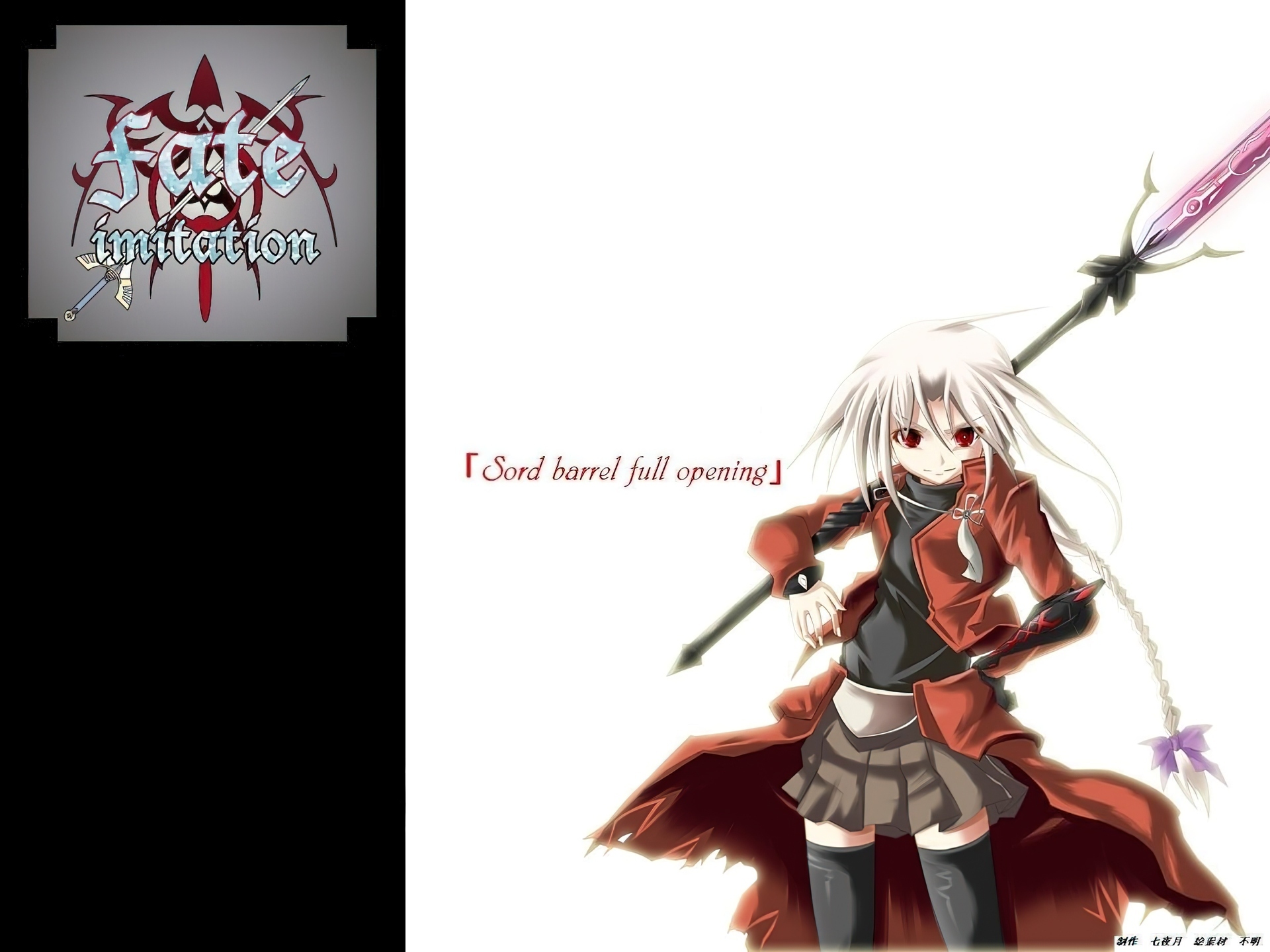Edytor tapety: Fate Stay Night, kij, warkocz, wstążka, dziewczyna, napisy