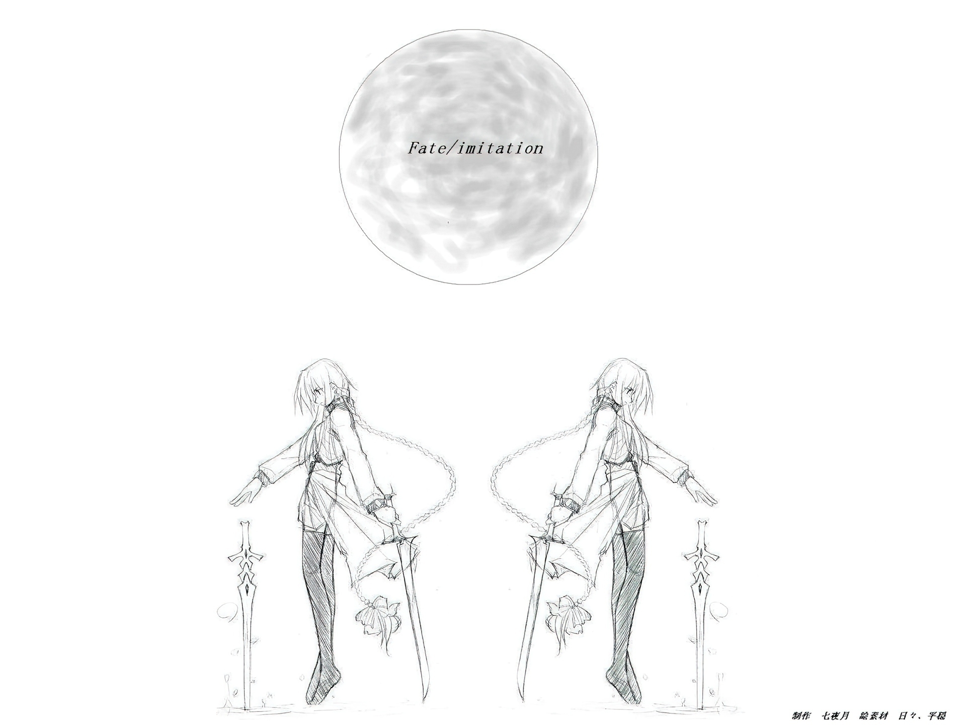 Edytor tapety: Fate Stay Night, dziewczyny, miecze, szkic