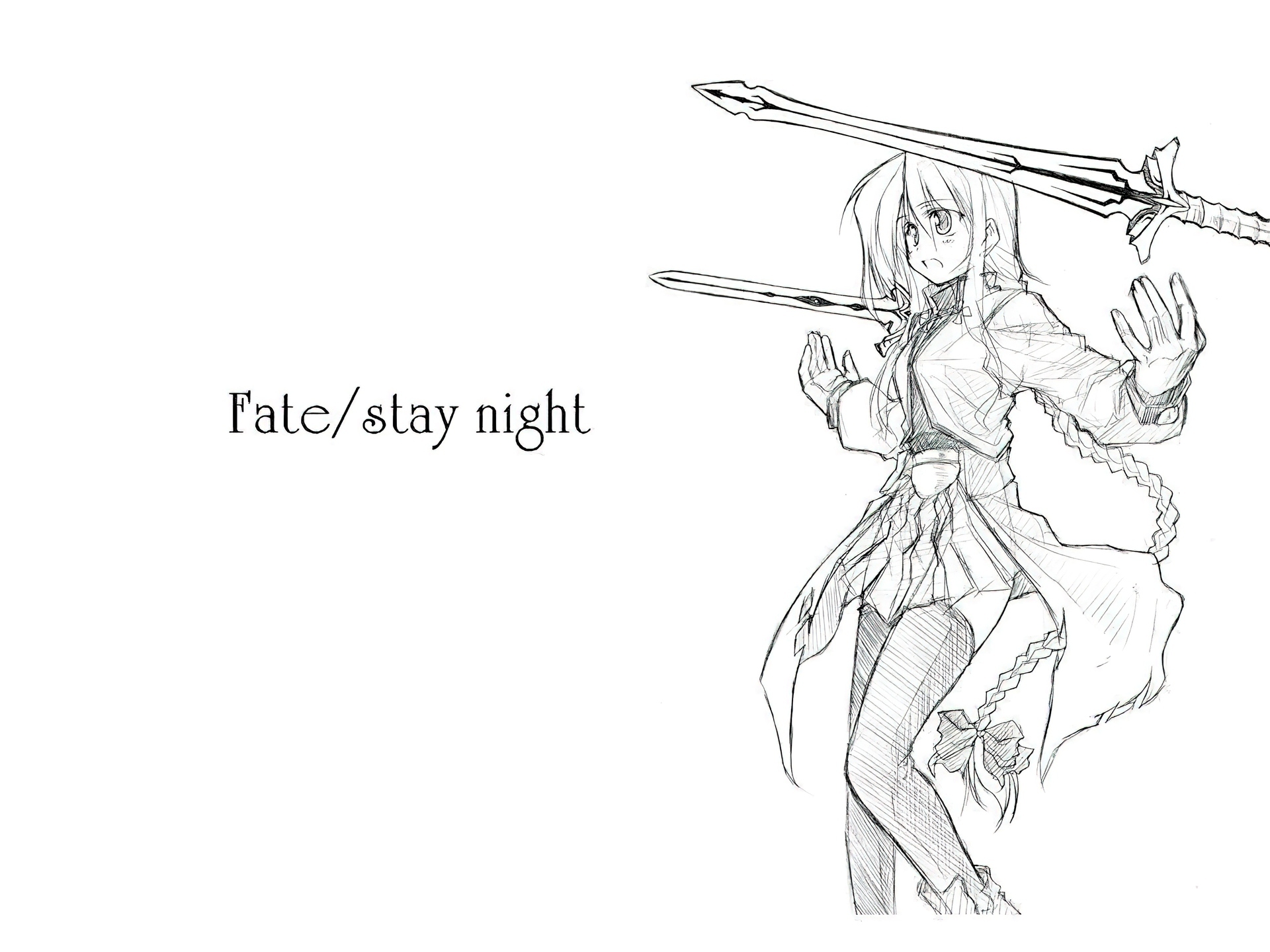 Edytor tapety: Fate Stay Night, kobieta, szkic, miecze