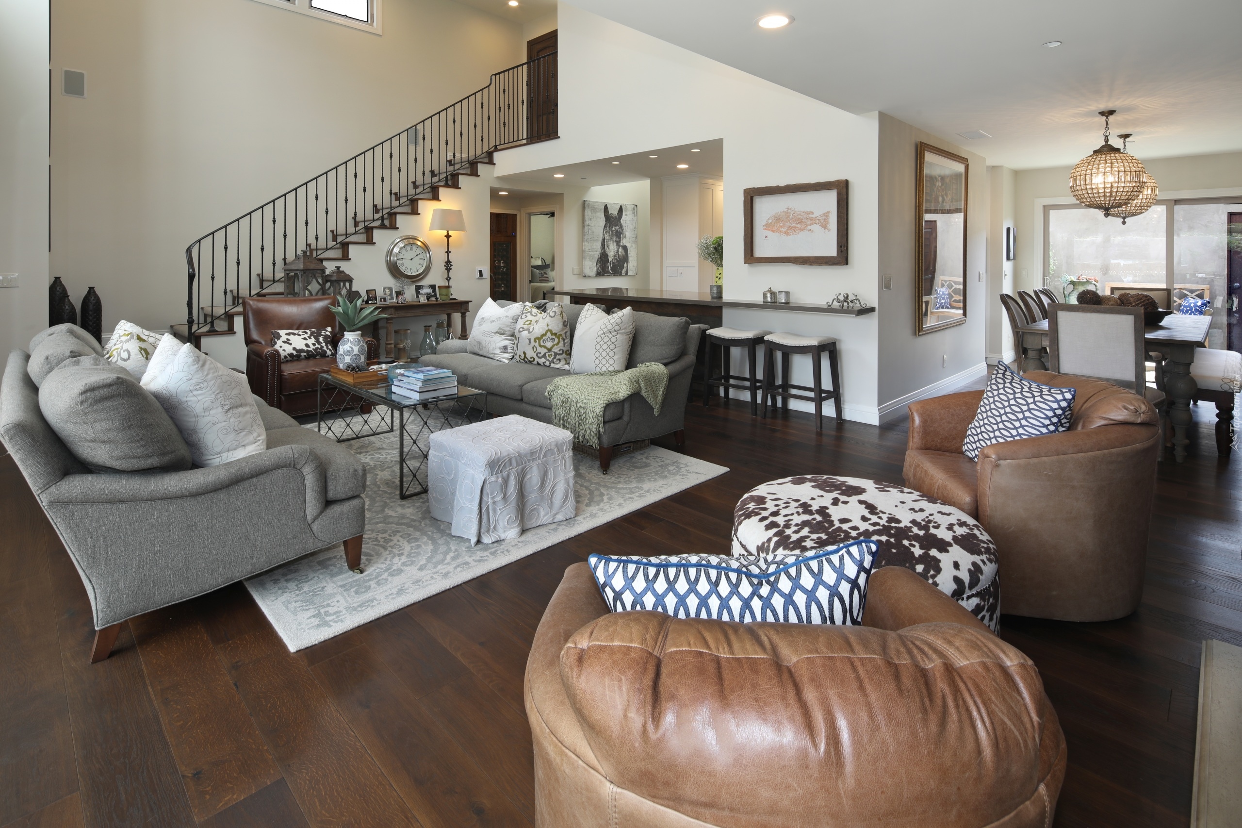 Edytor tapety: Salon ze schodami prowadzącymi na górę