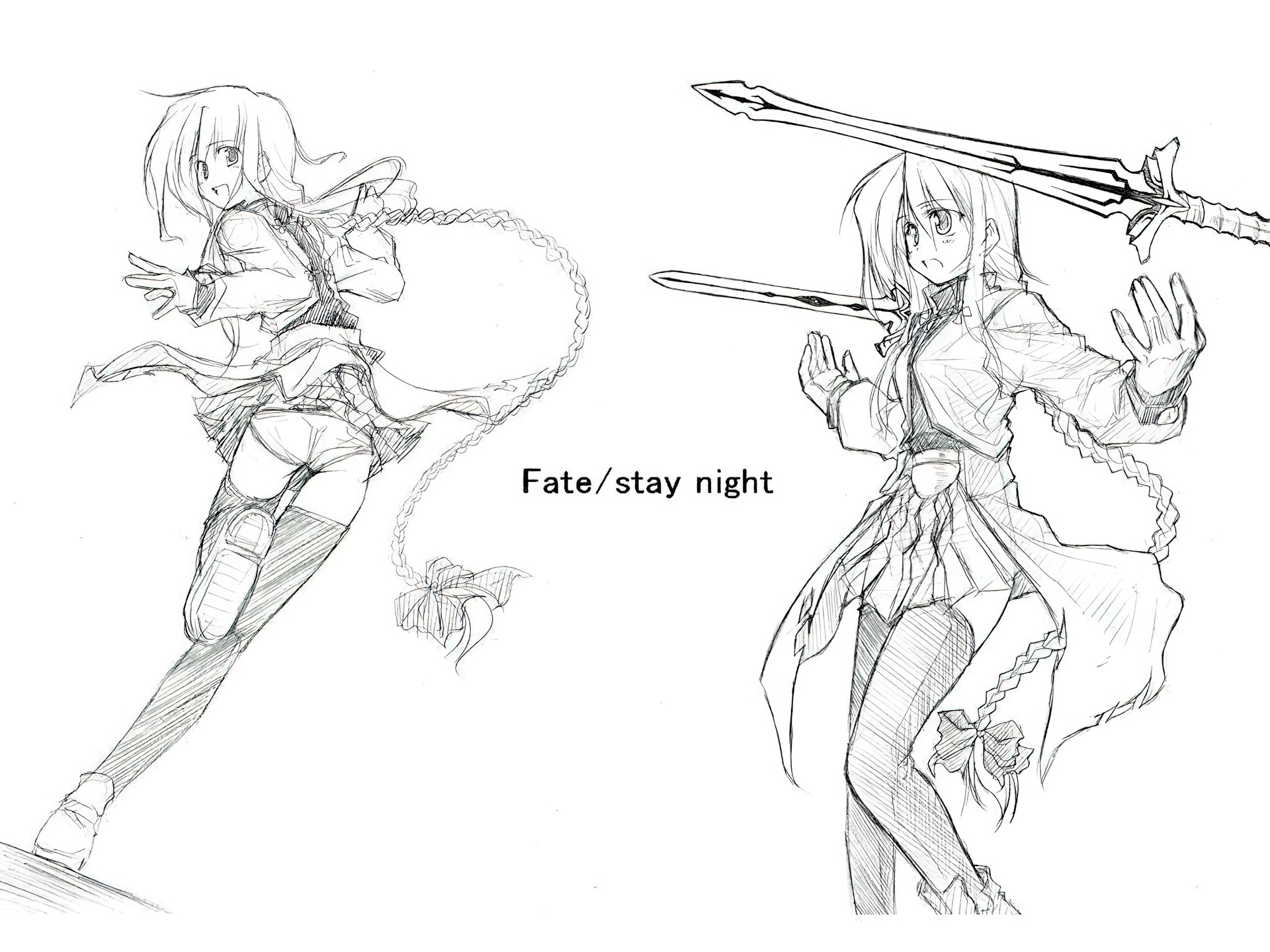 Edytor tapety: Fate Stay Night, szkic, ołówek, kobiety, miecze