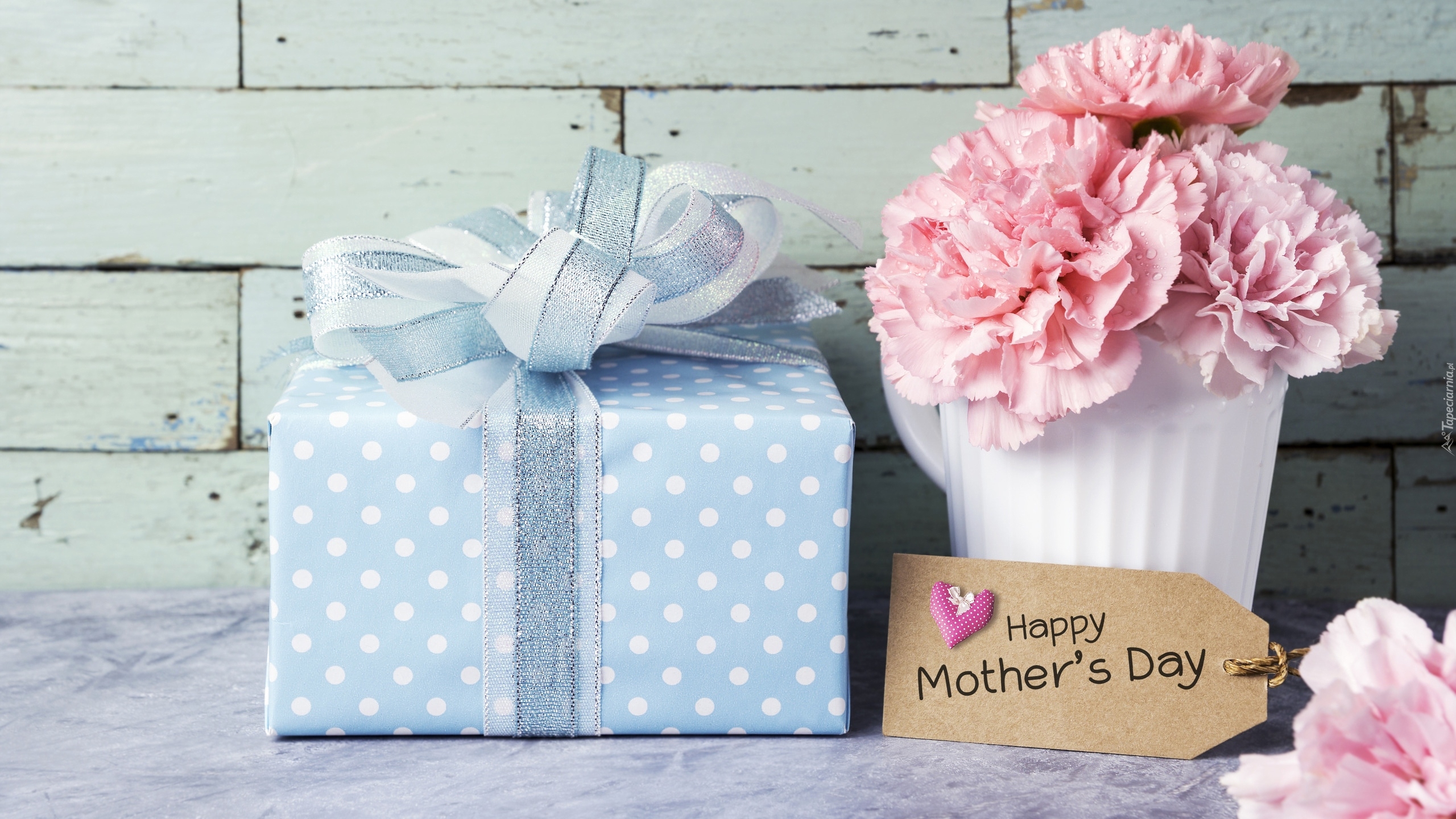 Edytor tapety: Kwiaty z prezentem na Dzień Matki