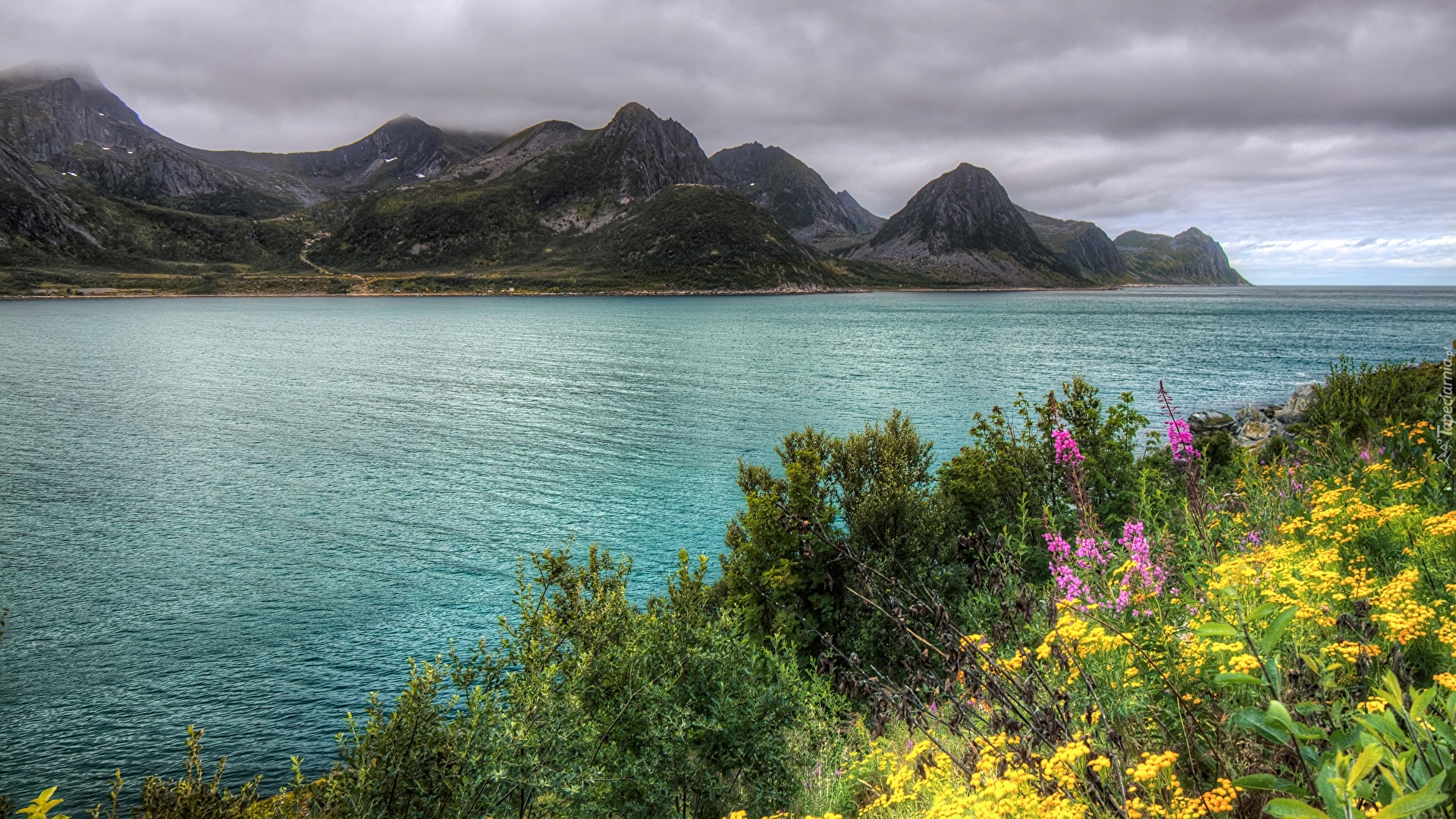Edytor tapety: Kwiaty zakwitły nad brzegiem rzeki