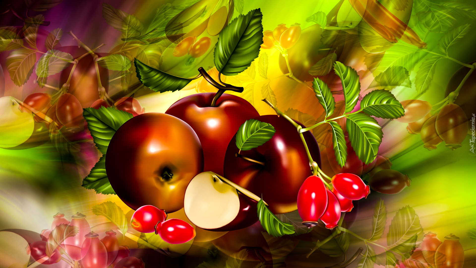 Edytor tapety: Jabłka i owoce dzikiej róży