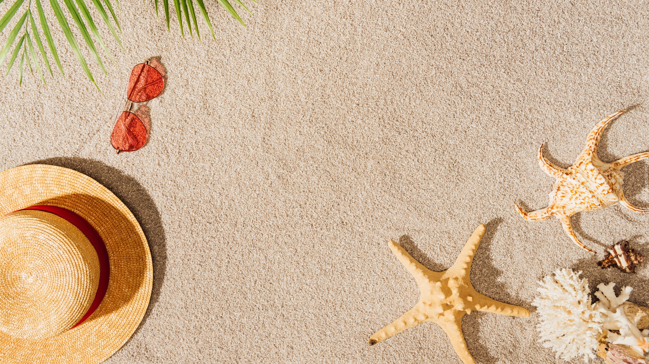 Edytor tapety: Kapelusz z okularami i rozgwiazdą na piasku