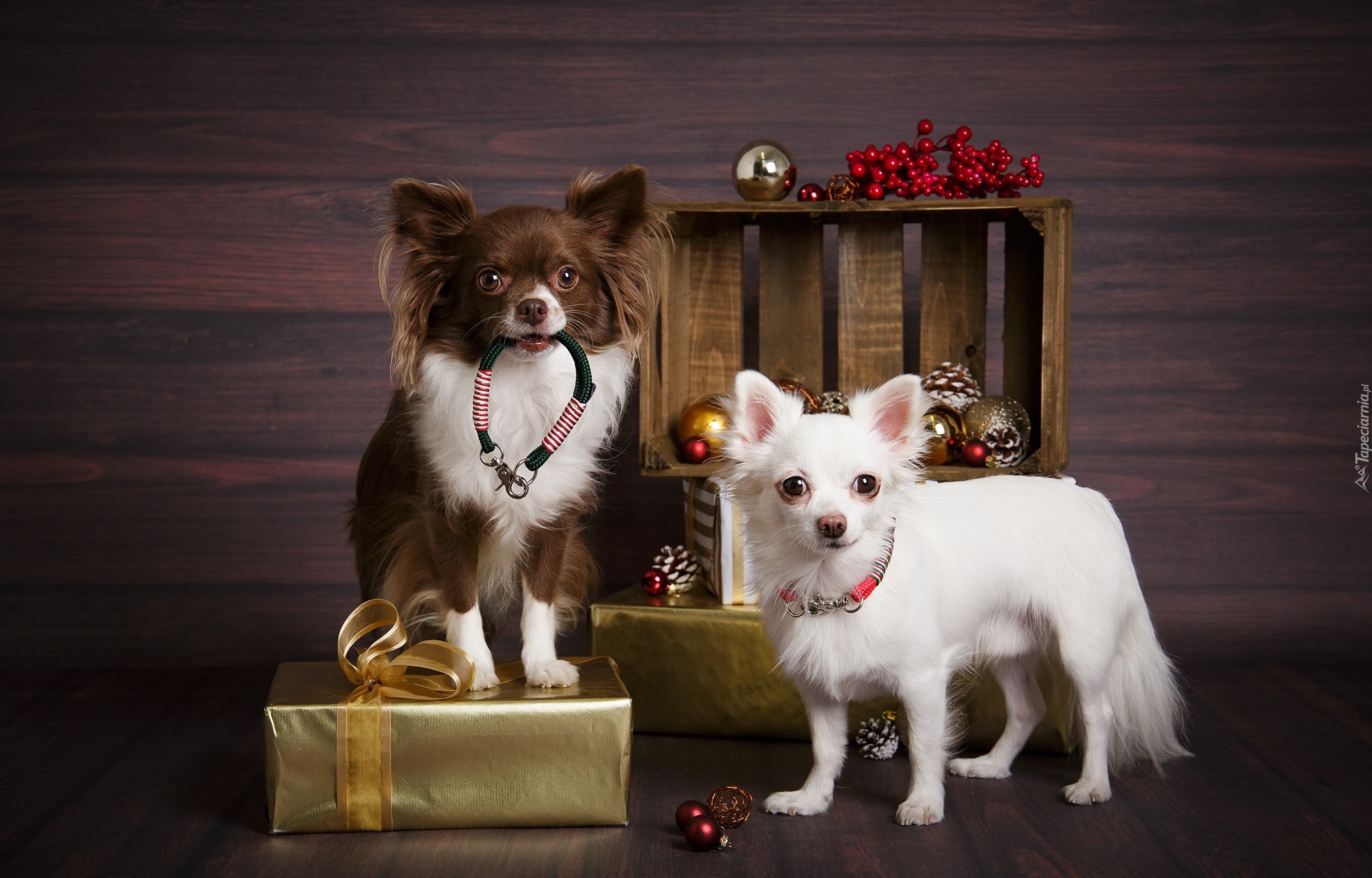 Edytor tapety: Dwa pieski chihuahua i prezenty