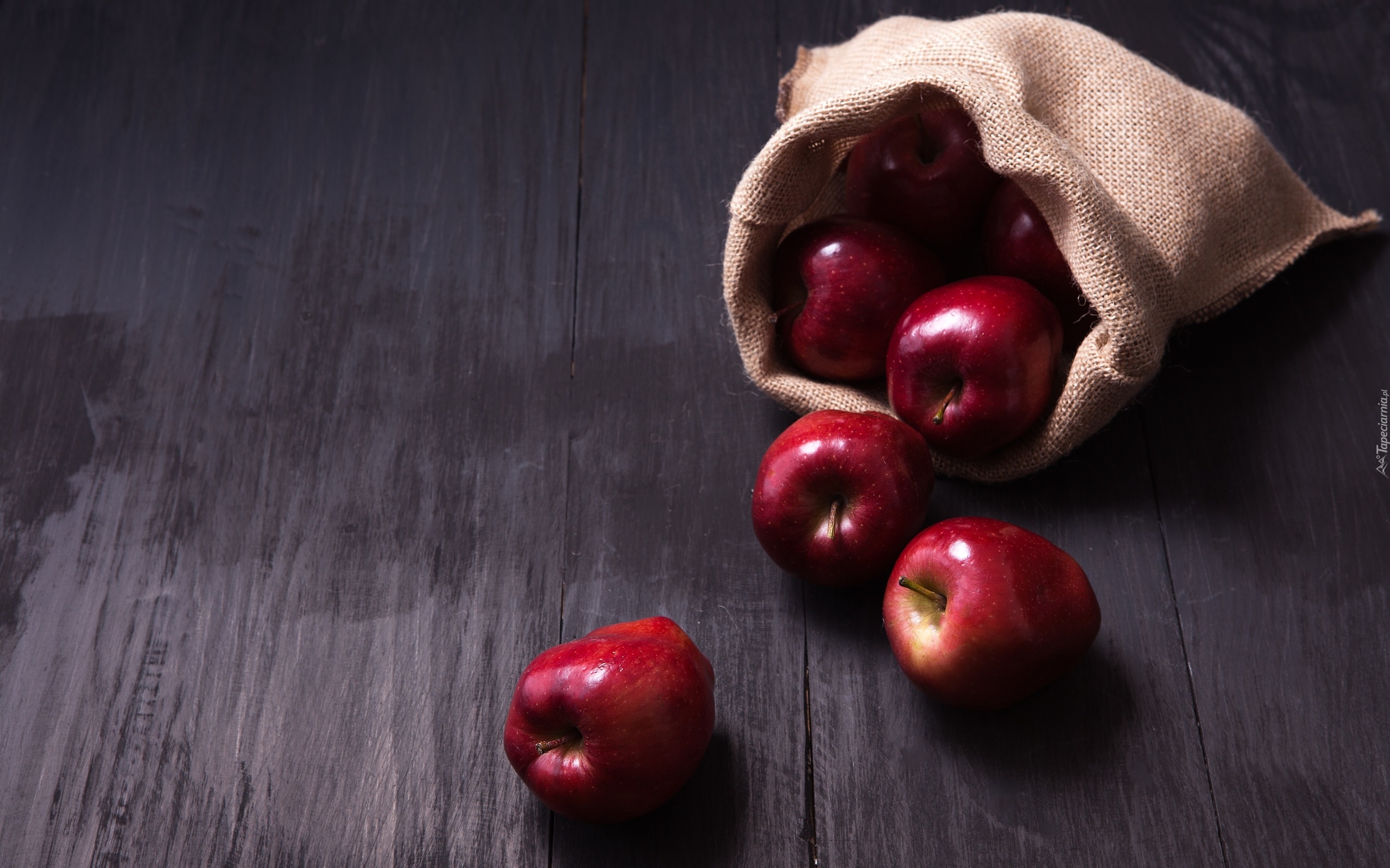 Edytor tapety: Czerwone jabłka wysypane z worka
