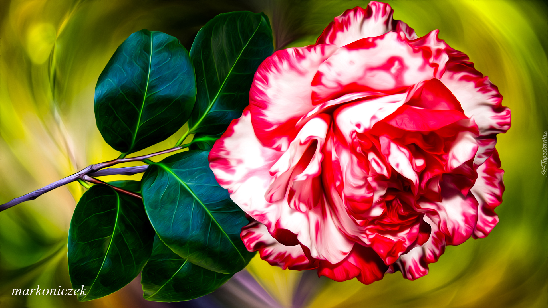 Edytor tapety: Czerwono-biała kamelia w grafice