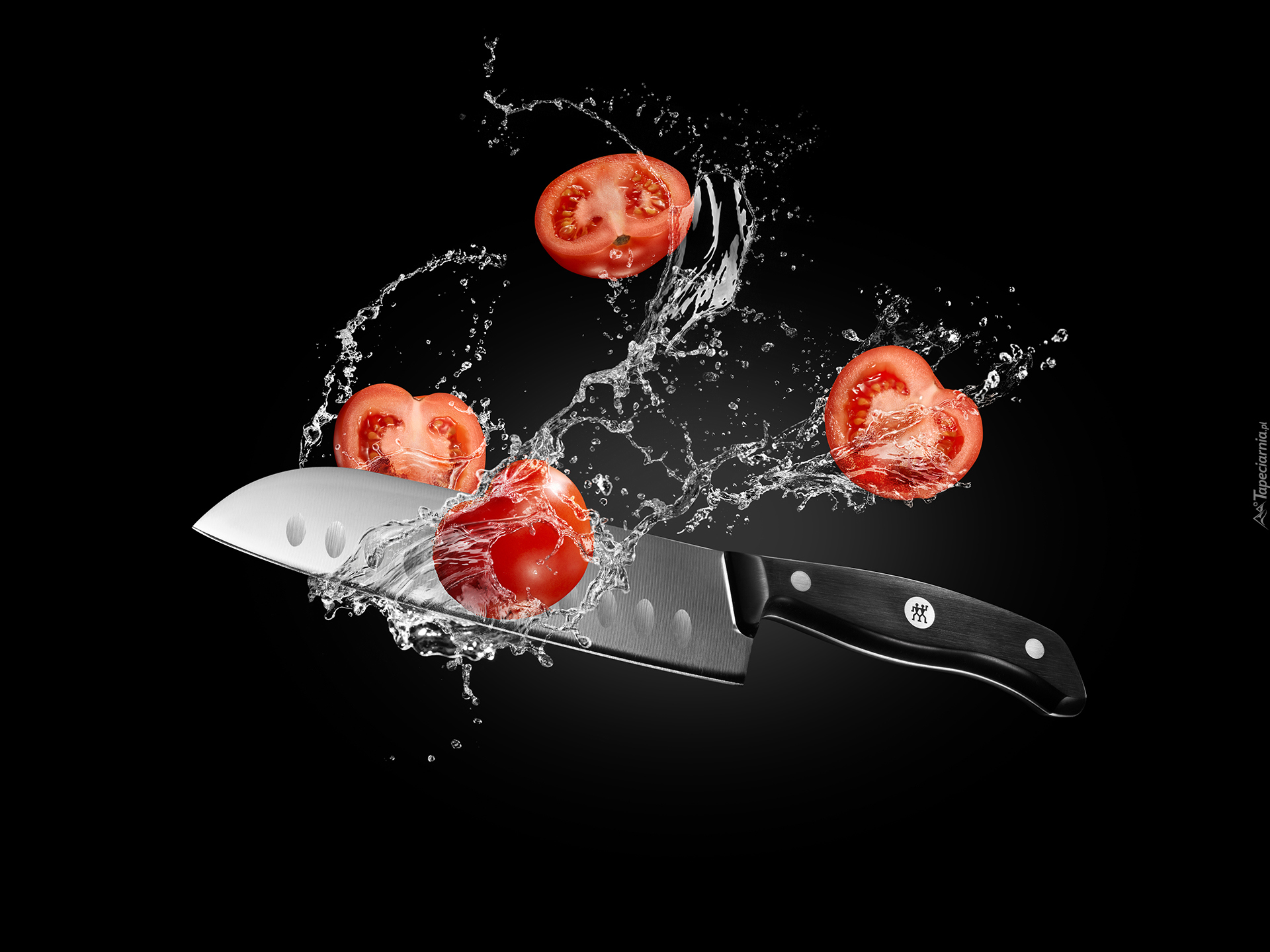 Edytor tapety: Nóż krojący pomidory