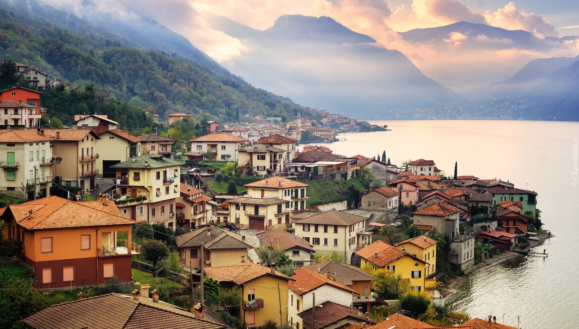 Edytor tapety: Domki nad jeziorem w Como