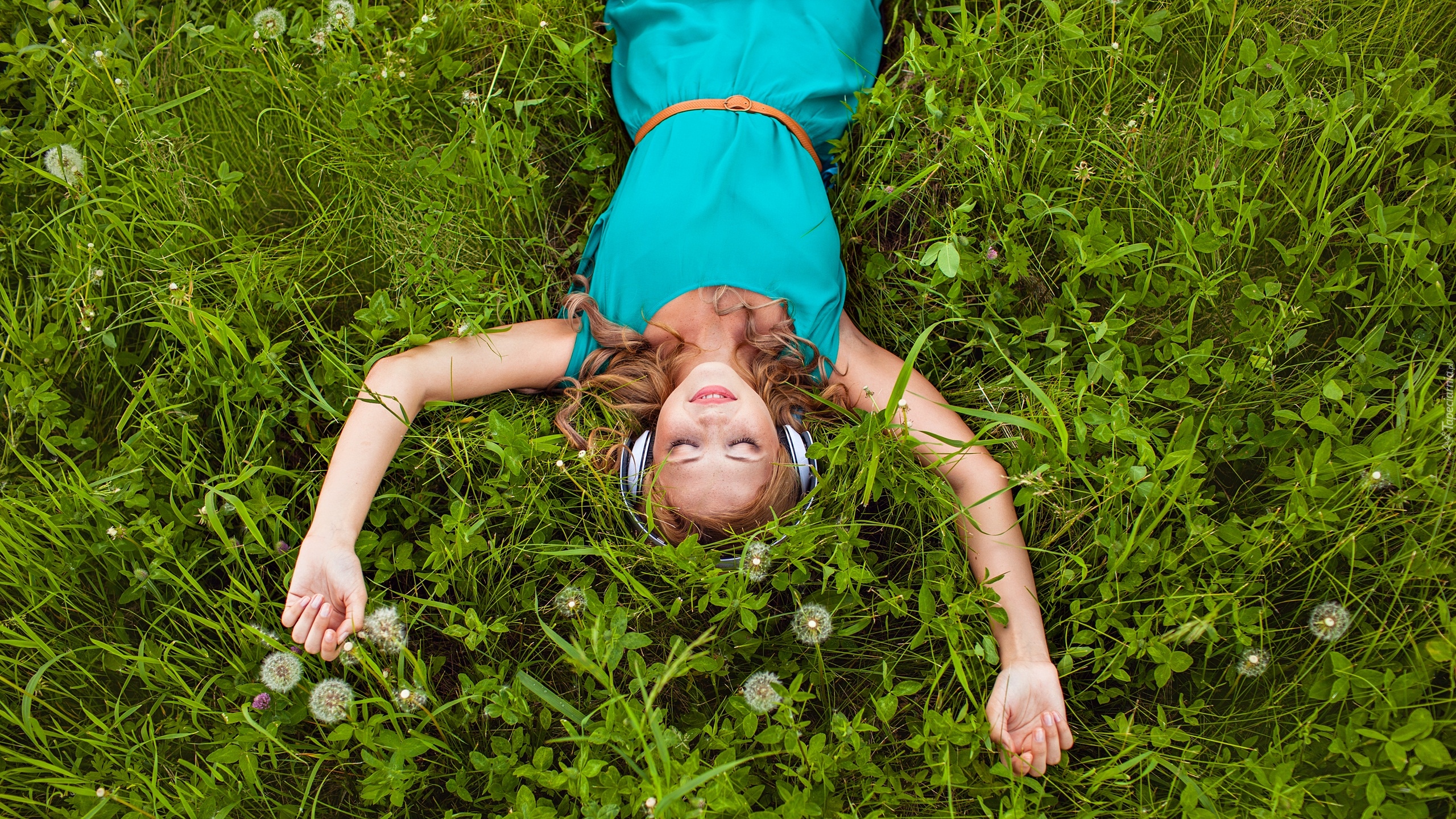 Edytor tapety: Kobieta ze słuchawkami na łące