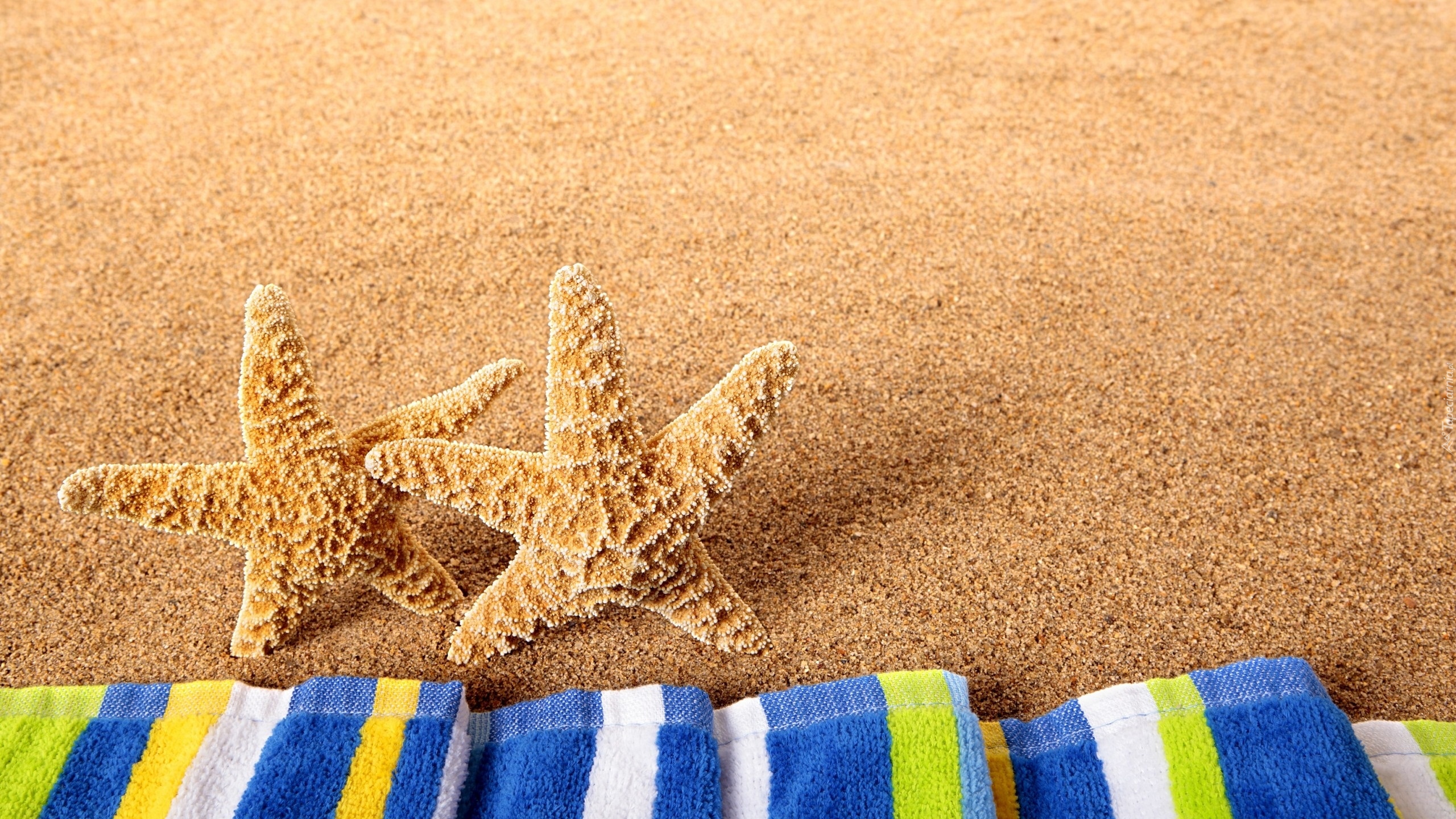 Edytor tapety: Rozgwiazdy obok ręczników na piasku