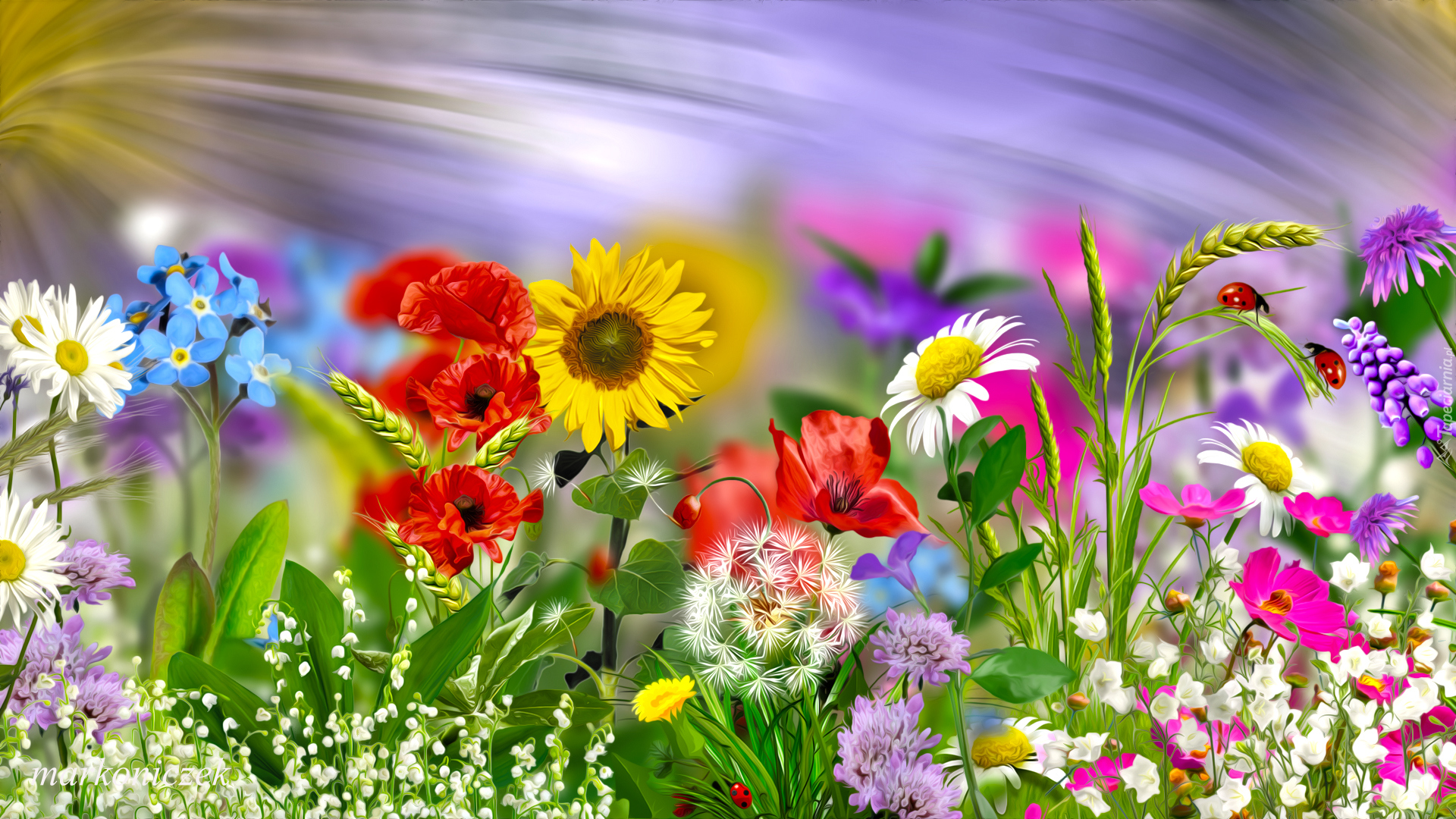 Edytor tapety: Grafika z kwiatami na łące